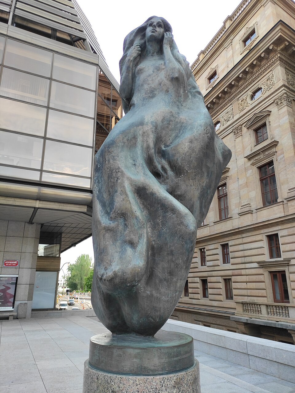 Обитает на площади Вацлава Гавела, у Национального театра и напоминает одновременно полиморфа и призрака. Зовут её Znovuzrození, что значит «Возрождение». Автор — Йозеф Малейовский, 1983 год. Всё в ней как будто бы стекает: плечи, волосы, грудь, таз. Вся она — медленно оседающий жест. Кажется, коснись, и она от смущения расползётся в бронзовую лужу, обвивающую постамент. Гладкая, бесстыжая, покрытая патиной. Кстати, любит косплей – иногда ее наряжают в стиле Кармен или Густава Климта. Для любителей «покататься на волнах»