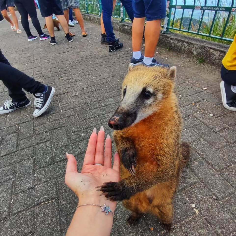 Ну, точнее, носухи (пт. "quati"), они из семейства енотовых. И хоть по виду они немного отличаются от привычных американских собратьев, но проказники такие же. Рядом с ними сорок ловить нельзя, как и держать сумки открытыми)