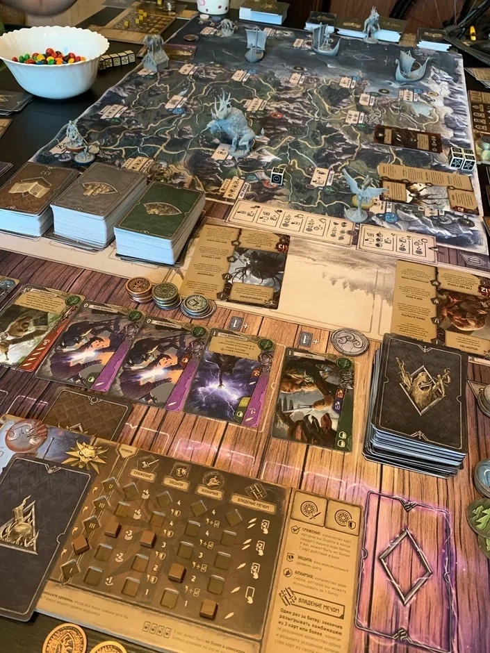 Что сказать людям, которые хейтят ведьмака за его цену? Ну, на предзаказе это была очень вменяемая и адекватная стоимость за огромный короб с пластиком, с картами, с металлическими монетками, кастомными кубами, с плейматом. То, что цена на барахолке разогналась из за прекращения сотрудничества с поляками.... ну, это совсем другая история. Вы попробуйте "Покорение Марса" на вторичке купить или Остров Духов, когда он заканчивается в тираже.