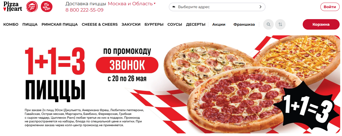 Официальный сайт: https://pizzahut.ru/