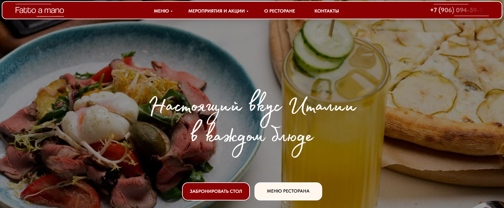 Широкий ассортимент блюд: пицца, паста, супы, салаты, десерты и напитки.