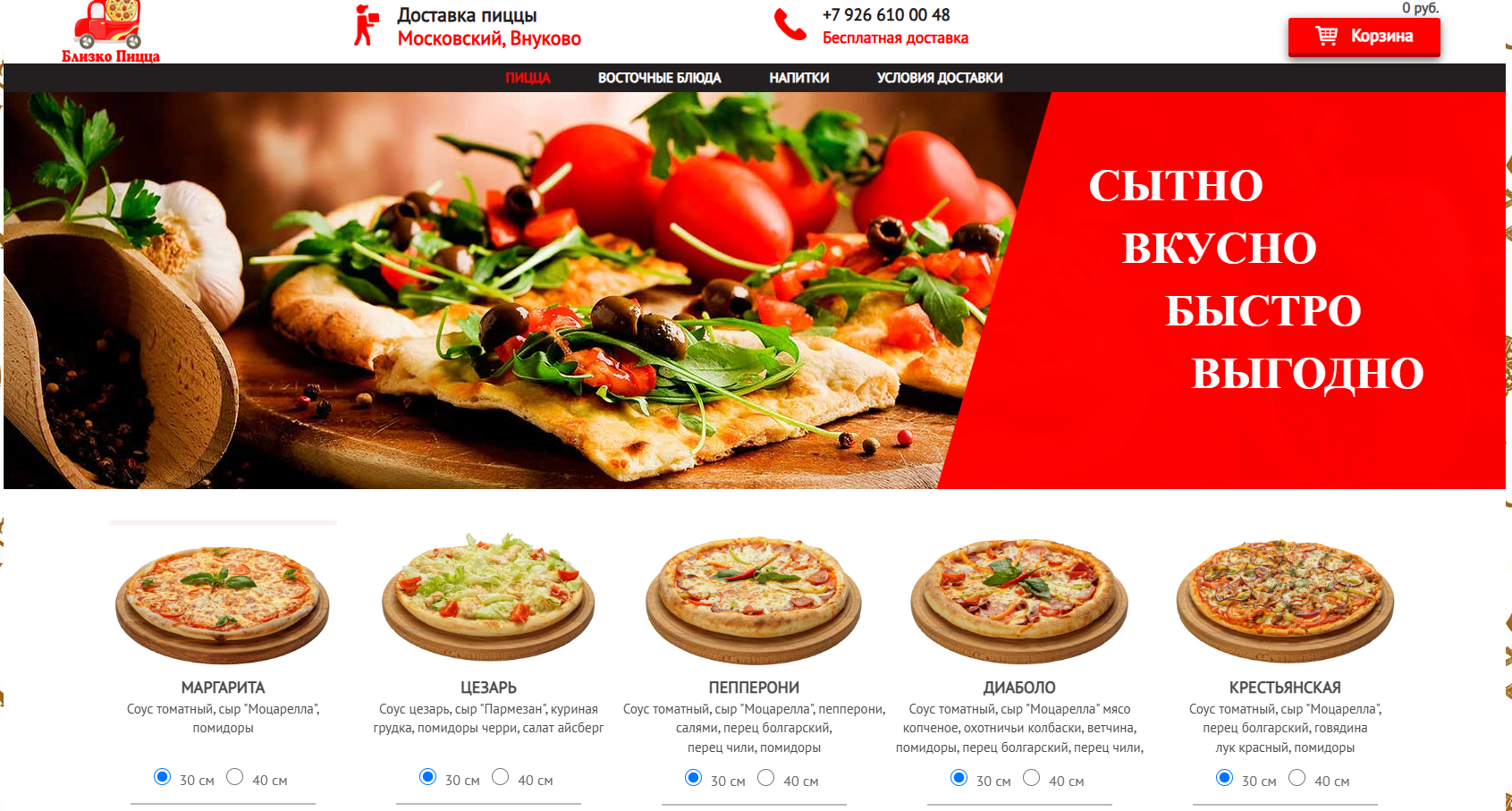 Быстрая и бесплатная доставка пиццы на дом или в офис.