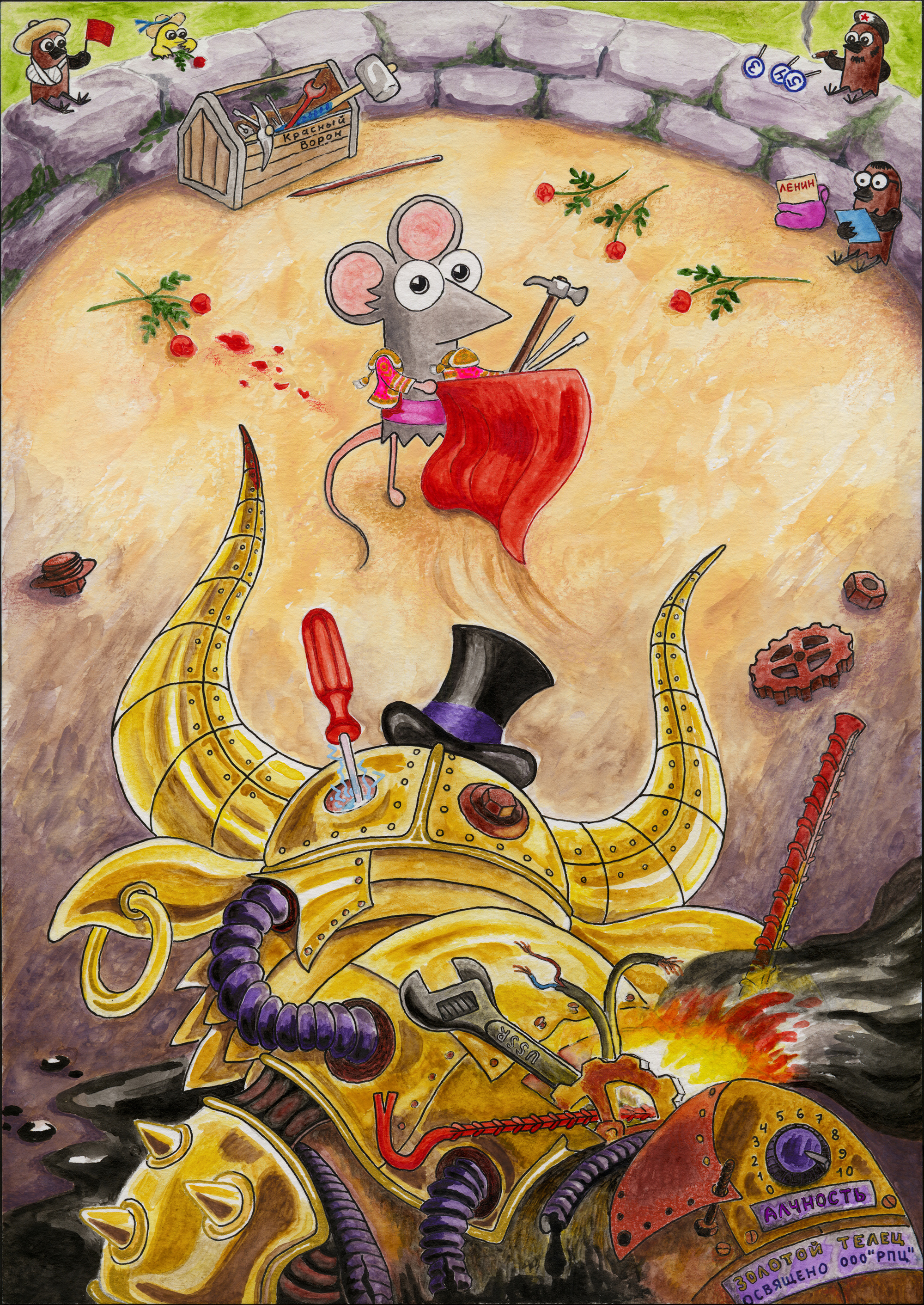 2 oknarosta 3 года назад «Тореадор» Худ.: Красный Ворон.JPG (tg, яд)#конкурс105 Золотой теленок Рисунок Тореадор Телец Ещё 0