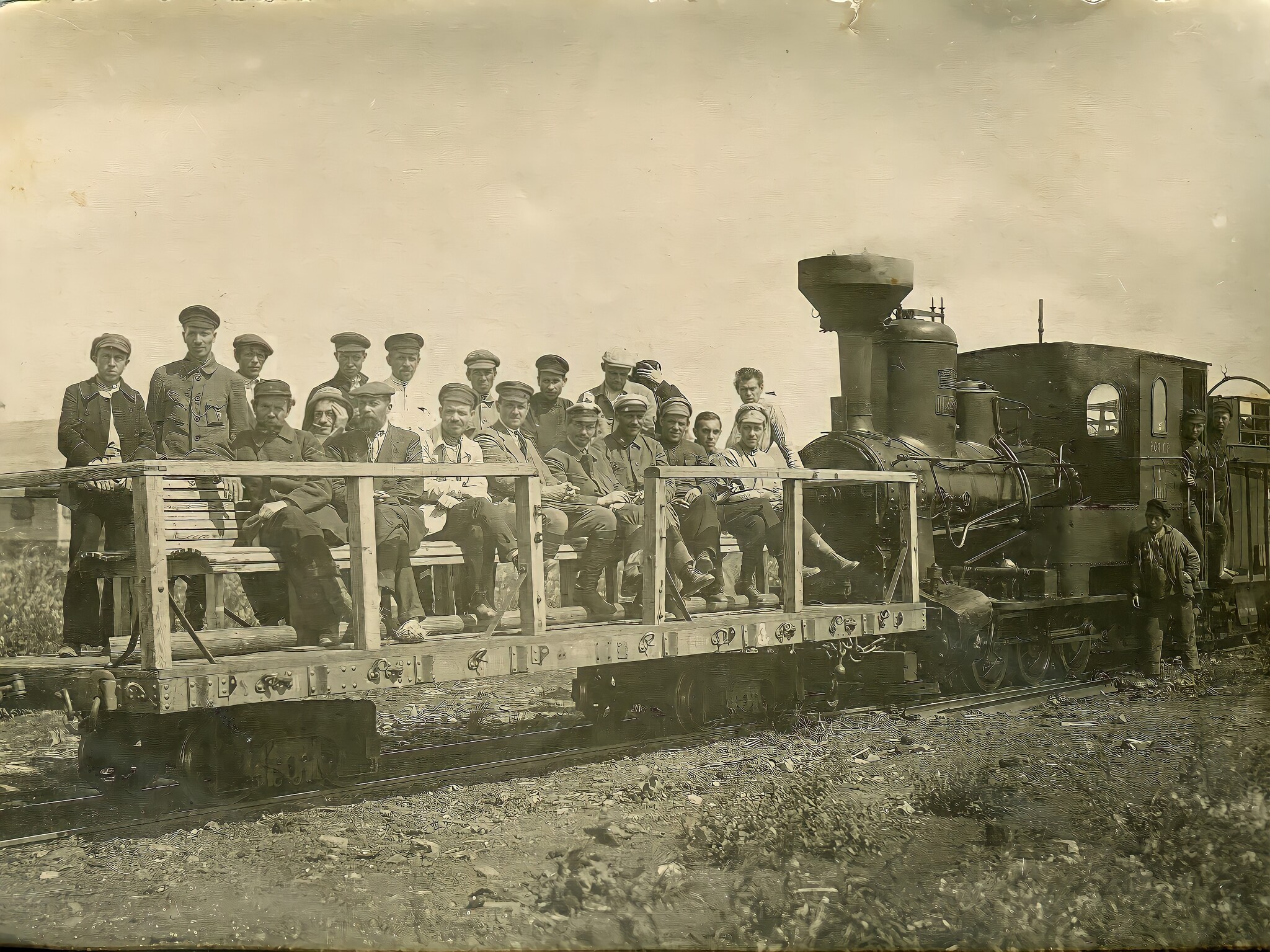 На исходе первого месяца советской власти инженер Александр Васильевич Винтер сделал краткий доклад В. И. Ленину в Смольном о топливном затруднении Москвы, о недостаточном снабжении города электричеством и о проекте сооружения под Москвой на подмосковных мещерских болотах крупной электростанции на местном топливе - торфе. Так и появился город Шатура. На фото рабочие, едущие на торфоразработки по местной узкоколейке.