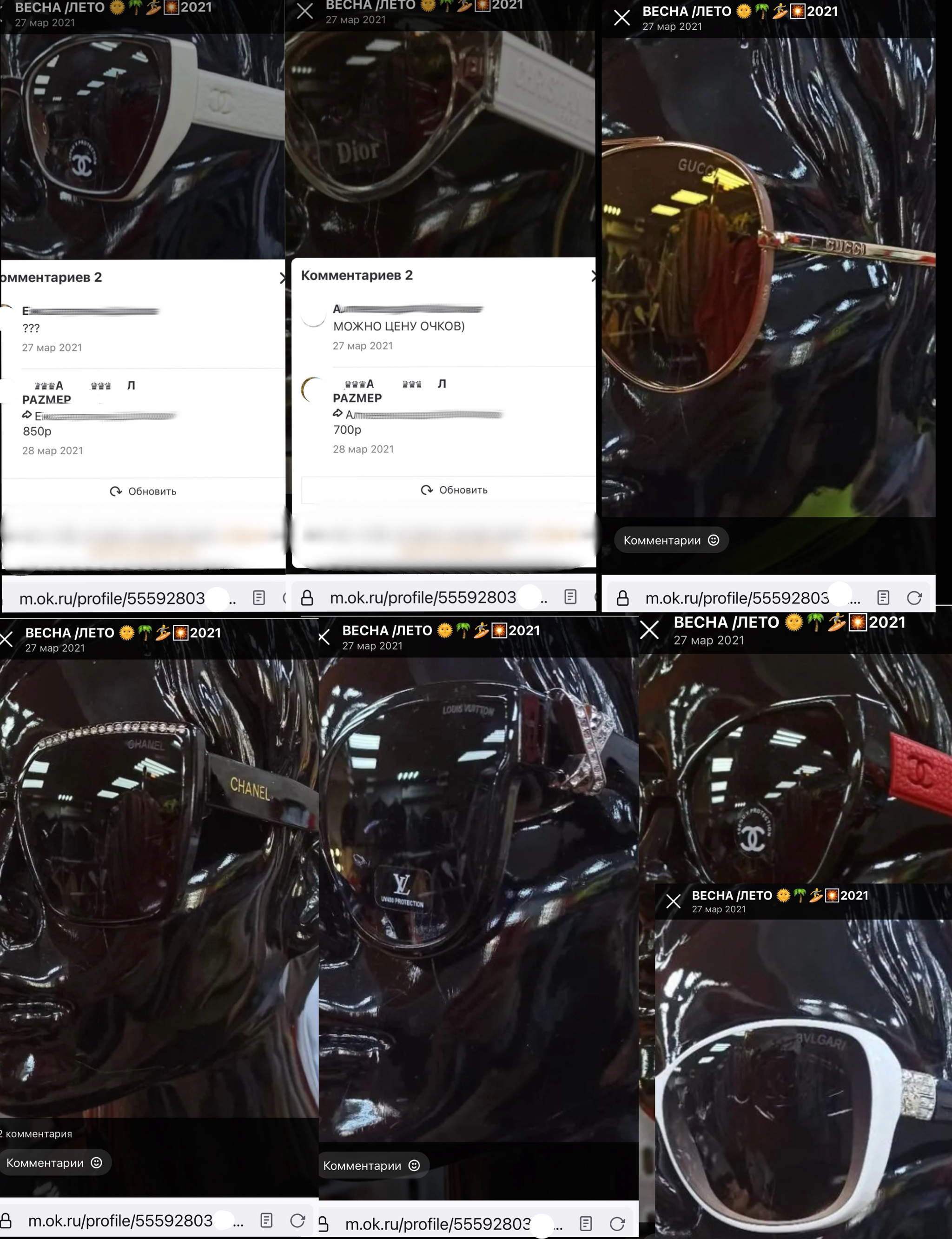 Как не шутка и то, что ИП собственноручно выкладывает в открытый доступ доказательства своих правонарушений. Для «опознания» я оставлю кусок из названия магазина, часть цифр и имени аккаунтов. Больше указать не получится из-за персональных данных. У меня нет решения суда или экспертного заключения о том, что товары контрафакт. Но и ежу понятно, что если вам продают люксовые очки «PRADA» за 1000 рублей, когда их цена по рынку 30 000-50 000 рублей, то это не скидка. Надеюсь, и с цензурой всё получилось. Простите за местами шакалистые скрины, где-то придется приблизить, чтобы разглядеть.