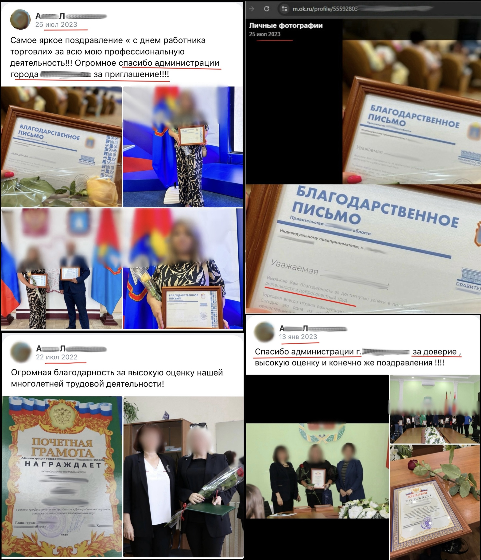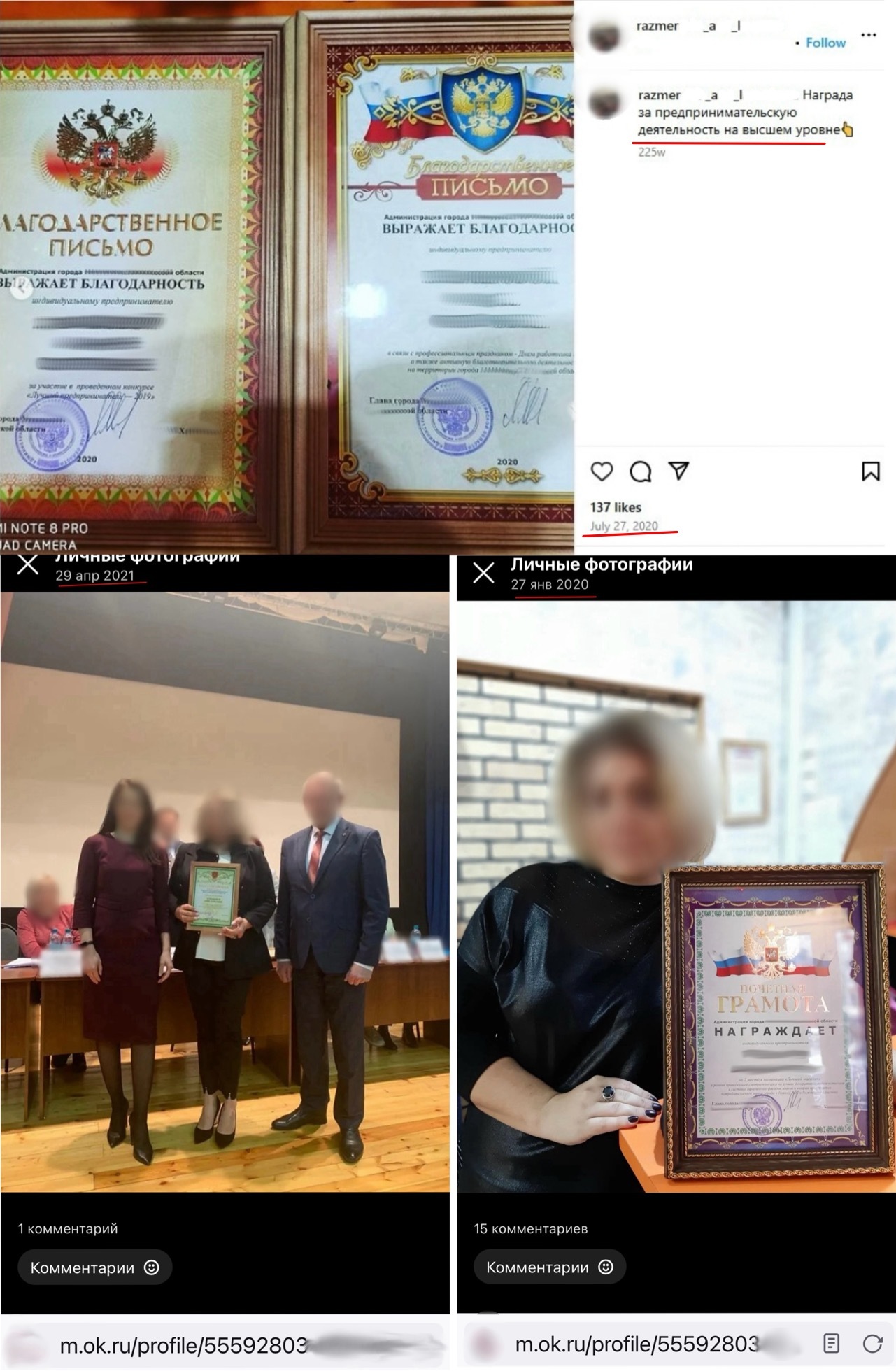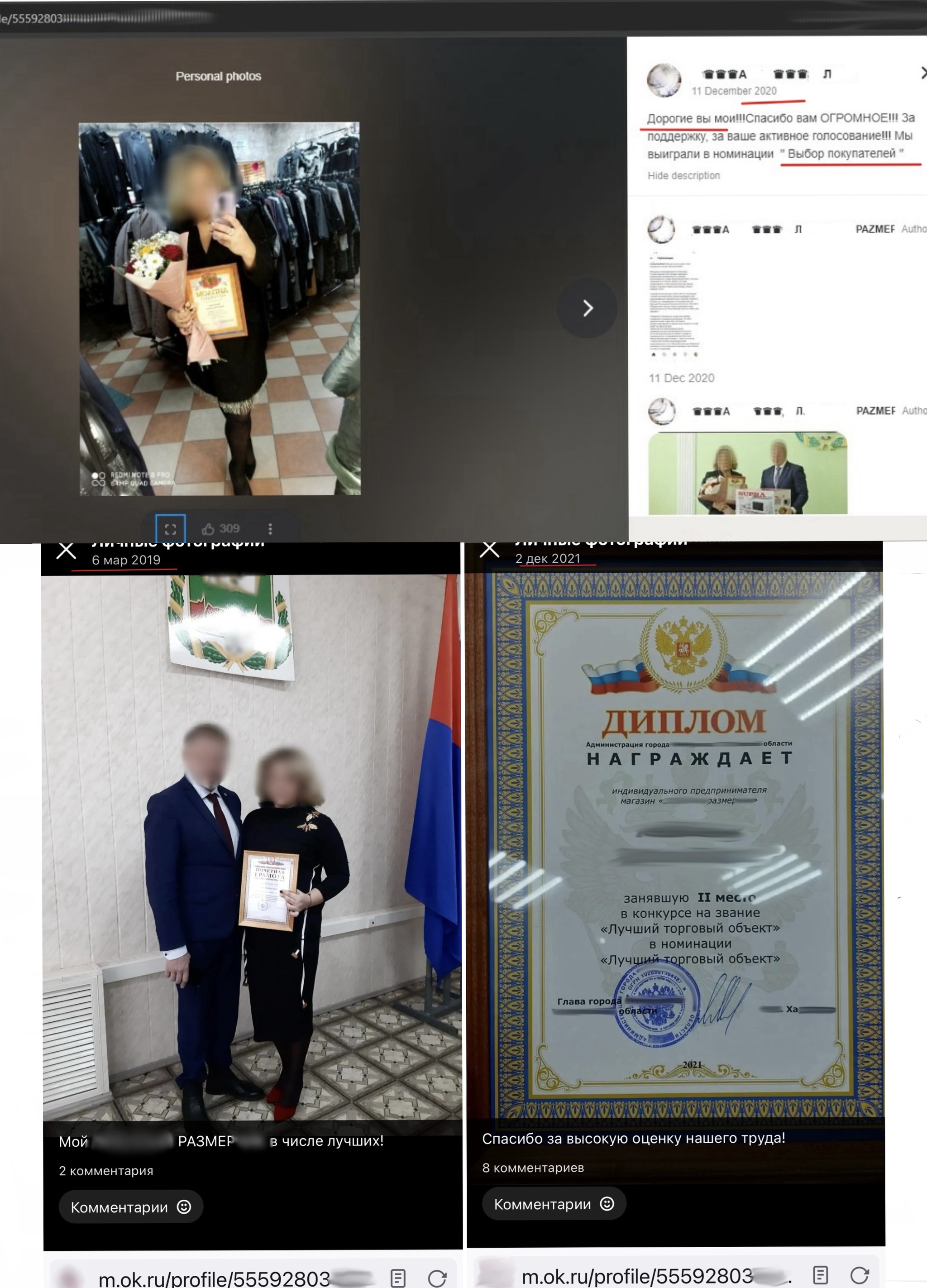 Каждое такое вручение обычно освещается в соцсетях магазина, в соцсетях Администрации города, Главы города, главной местной газеты «Правда», иногда по нашему местному кабельному ТВ и в его соцсетях. ФИО ИП и наименование магазина везде - сайты, ОК, ВК, ТГ, Дзен. И это еще без упоминания разных «встреч власти с предпринимателями», репортажей региональных СМИ итд. (Если вы уже поняли кто это/где это, и ваша разящая рука требует действий - не пишите ИП, лучше навтыкайте комментов остальным в списке - тем, кто сделал её популярной. Если они успеют своими глазами увидеть ее посты, до того, как она всё снесёт, будет хорошо. Даже если только мой пост прочитают, то это уже будет результат и всё не зря. Привет им с Пикабу).