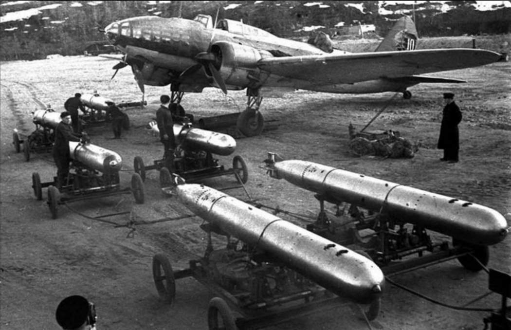 В сентябре 1941 г. минно-торпедная авиация появилась на Северном флоте. С Балтики туда перевели звено ДБ-3Ф во главе с капитаном И.Я. Гарбузом. Сначала они использовались как обычные бомбардировщики, а затем как высотные торпедоносцы. До конца года сбросили 13 торпед 45-36АВА и не попали ни разу.
