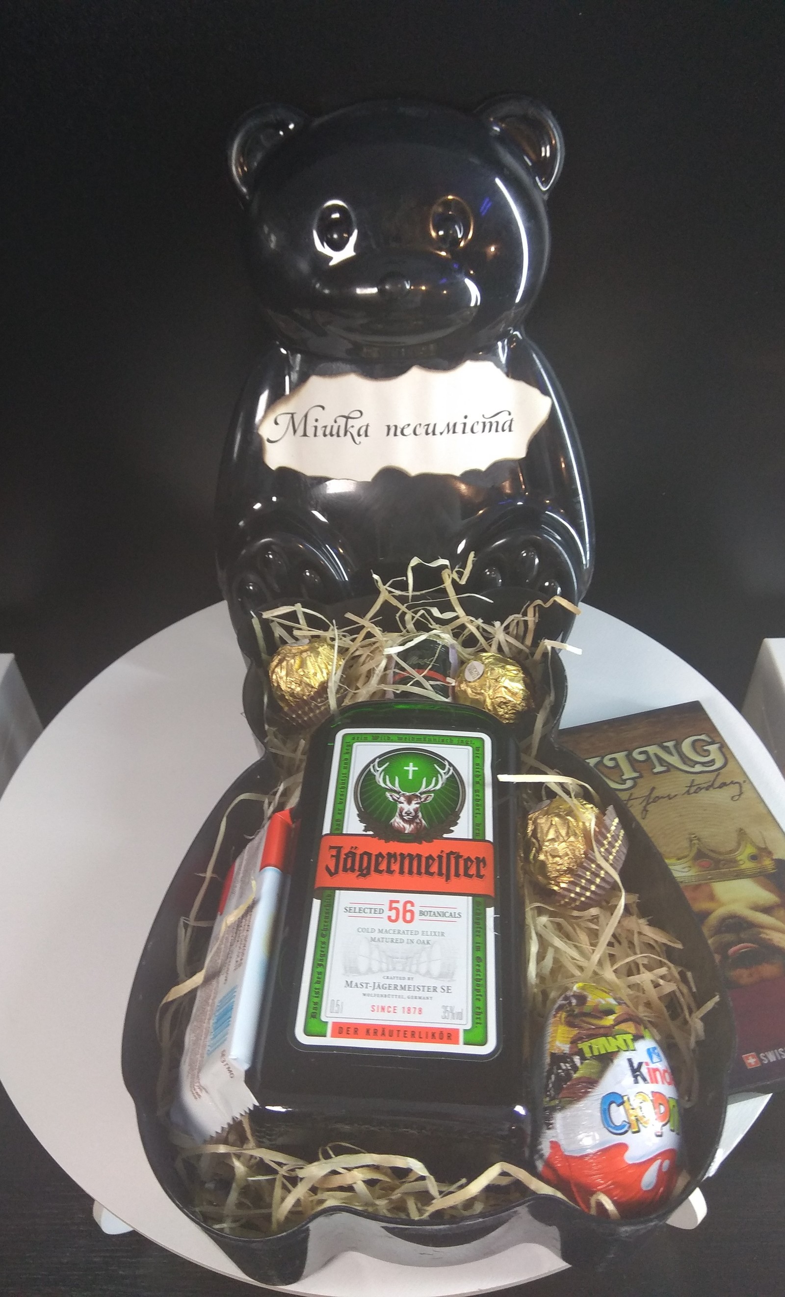 Подарок готовился для обожателя егерьмейстра, так что внешний декор был выбран очень быстро. Миниатюрная бутылочка по городу искалась в разы дольше.