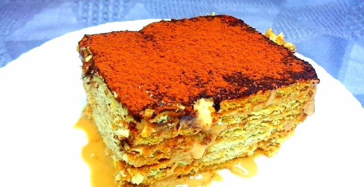 В прямоугольную форму выкладываем печенье в один слой, сверху выкладываем часть крема, равномерно распределяет крем по печенью. Далее делаем все то же самое: слой печенья, далее крем, так делаем пока не закончится крем с печеньем.