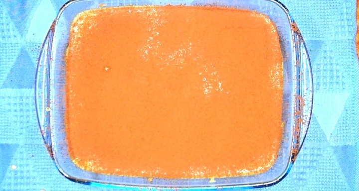 Верхний слой должен остаться крем, сверху крем присыпаем какао.