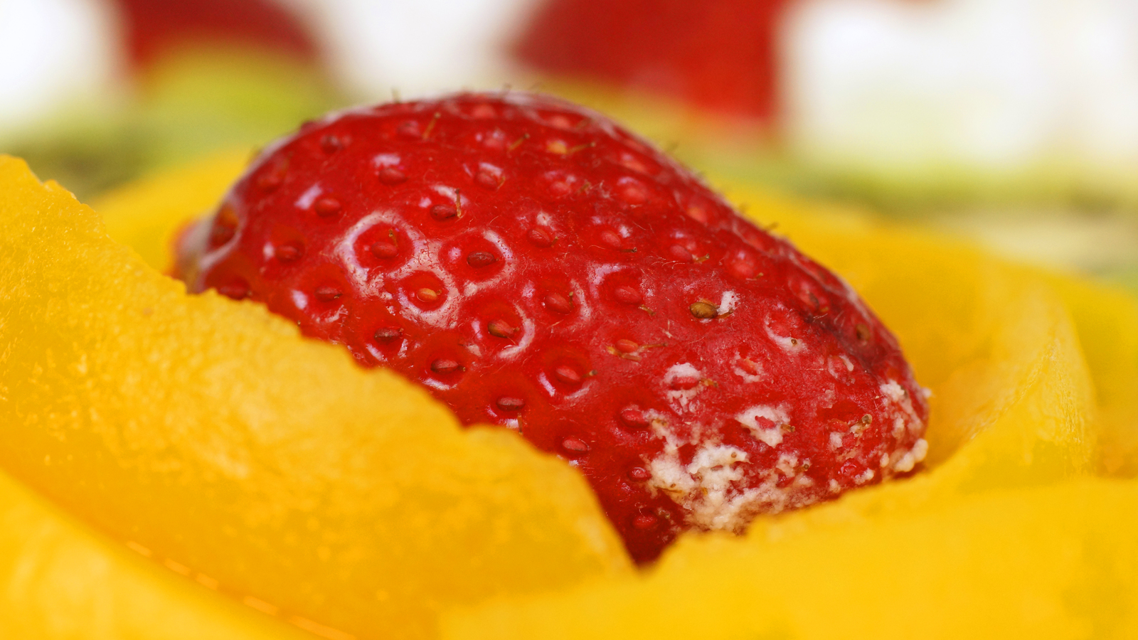 Промазываю сливками с боков и верх торта. Всё выравнивая до красоты неописуемой. Украшаю торт срезами клубники, тонкими кольцами киви и дольками оставшегося персика из компота. С боков я прилепил тонкие кольца клубники, которые срезал из серёдки ягоды. Каждую ягоду я резал на 4 фрагмента. Центральные по бокам, крайние сверху. Пропитывается торт от 6 часов.