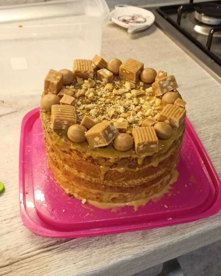 В общем сгущенка задаст вкус всему торту, поэтому скинуть залежавшуюся сгущёнку, которую никто не хочет доедать, не получится)