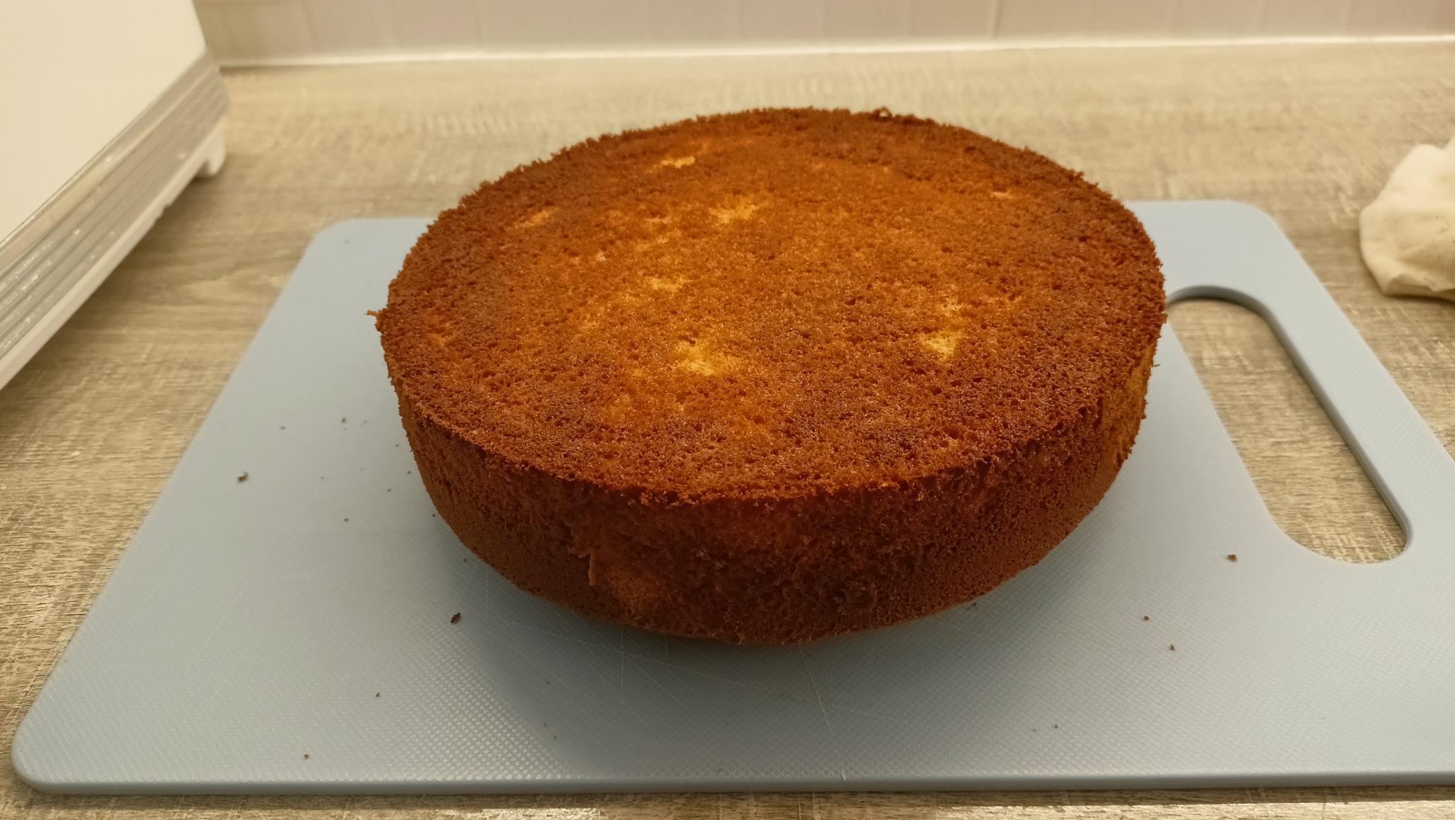 Если бы мы никуда не ехали, то я бы собрала торт, когда бисквит остыл. Но поскольку впереди 1500км, заворачиваю бисквит в пленку, пакую в контейнер.. Поехали!