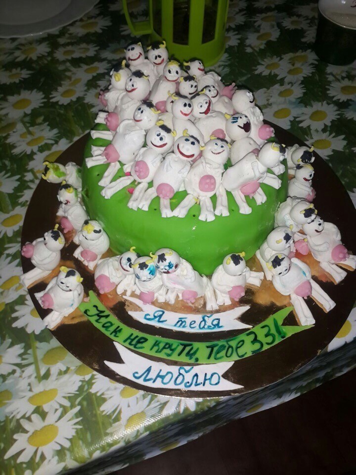 посмотрите на эти коровьи лица! Они же все настолько разные и все крайне харизматичные! А сколько позитива в этих смотрящих в разные стороны глаза?! А улыбки! Губы- мечта современных девушек! Это реально шедевр! Если бы этот торт сделал настоящий кондитер, но спустя рукава, он был бы другим. Просто стремным. А тут.. Это же впечатления на всю оставшуюся жизнь!