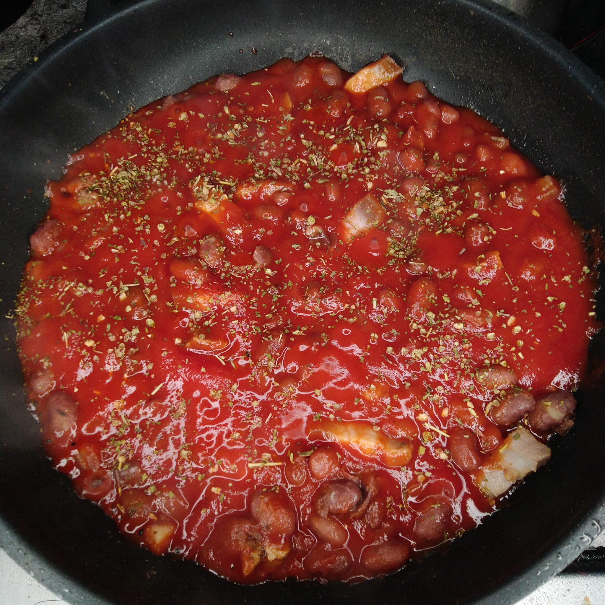 Добавляем томаты и специи по вкусу