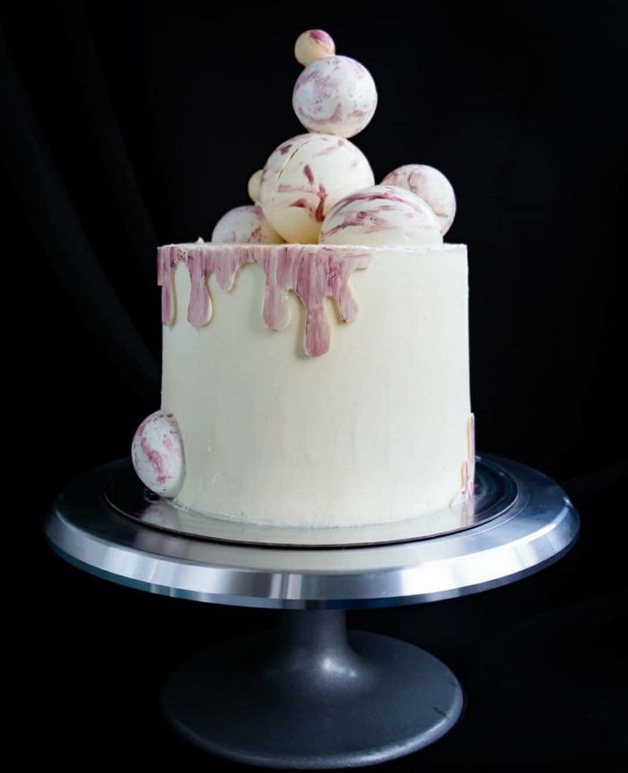 1. Итак, спустя несколько десятков попыток научиться темперировать шоколад, мне удалось таки это дело) Поэтому как только я научилась делать шоколадные сферы, сразу потянуло сделать популярный в конце прошлого года дизайн) К сожалению, фоткать было некогда в 6 утра, тк отдавала сие чудо заказчику, но честно сказать, это был первый торт, который получился именно таким, как и я хотела:)