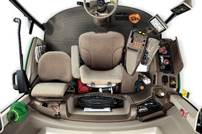 залезли в комбайн. Я скажу так, это не комбайн, это просто какой то космолет, все напичкано дисплеями и пр электроникой, водитель сказал только пригнали с Германии его. Сын рот открыл не знает куда смотреть! А я довольный как удав как будто в баллид формулы 1 сел)