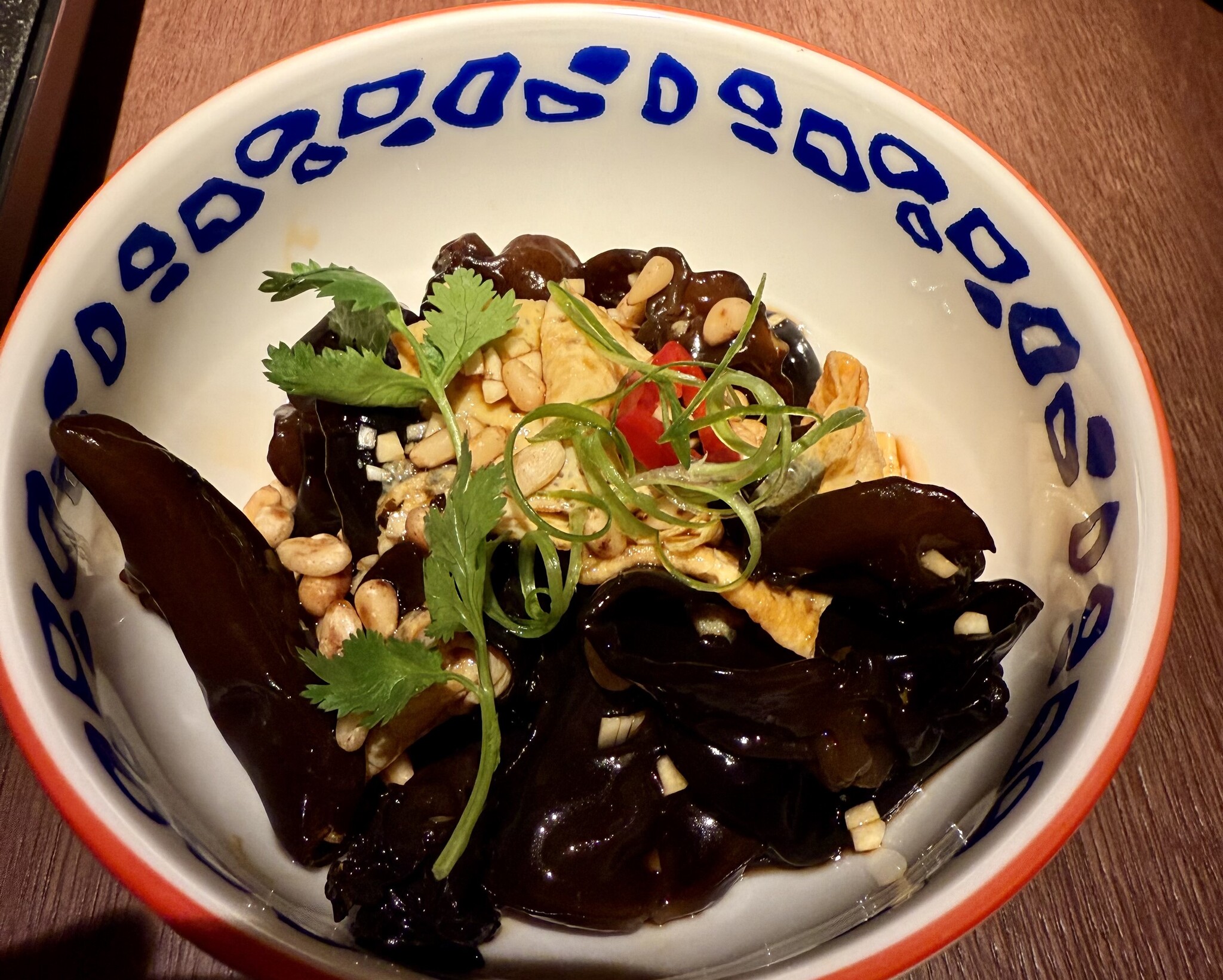 Теперь про главное - про еду. Взял грибы маринованные - приготовлены были отлично. И заказал бао с креветками и гребешками (пельмени по-нашему. Ну, или ближе к мантам). 3 пельменя - 490 рублей. Готовили их минут 20. Салат с грибами я быстро заточил, сижу, жду основное.