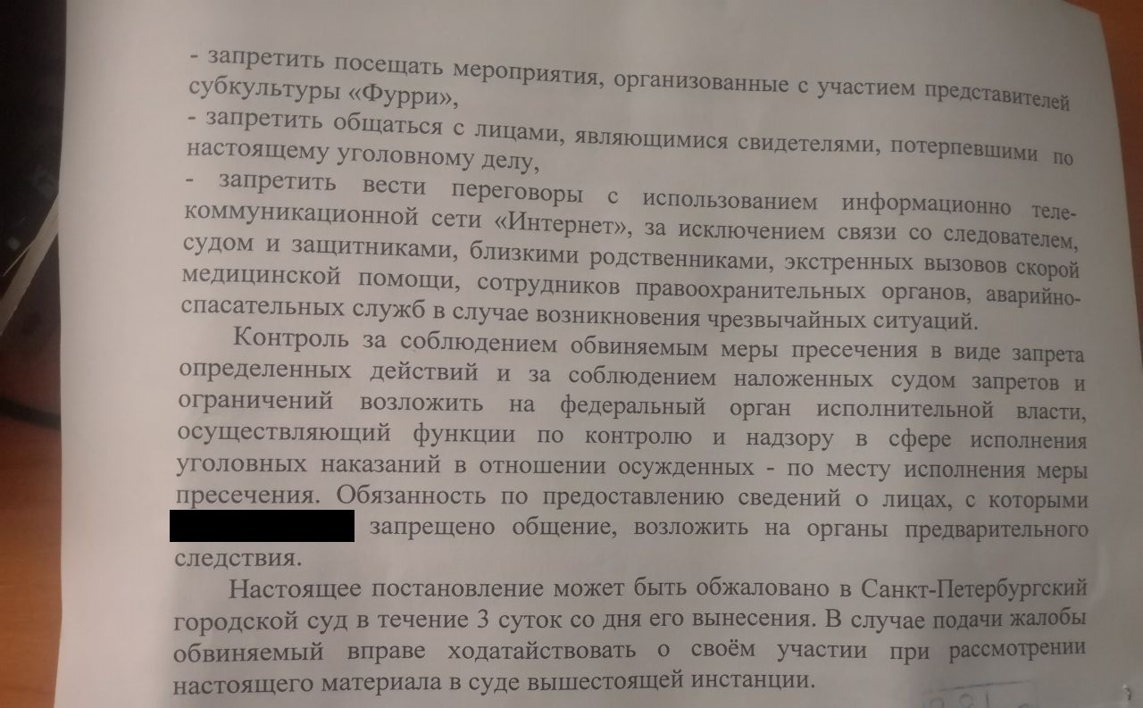 А дальше возбудили уголовное дело по статье 213 УК РФ. Личность нападавшего раскрали сами СМИ. Им оказался 19-летний Даниил, который вбил себе в голову, что фурри одеваются в костюмы, ебутся направо и налево, а он праведник в этом Содоме и Гоморре, который разгонит всех и станет мучеником. Рофлю, конечно, но тезис недалек от от истины. Позавчера был суд над этим дурачком и он получил лишь домашний арест сроком на 1,5 месяца, а также запреты на использование интернета и телефона, запрет на приближение к мероприятиям, где так или иначе фигурируют субкультура фурри, запрет на контактирование с потерпевшим и свидетелями и прочие мелочи. Легко отделался, если брать в расчет, что он подготовил заранее своё нападение, попытался на него завербовать несовершеннолетних людей, в его сумке были обнаружены измененные страйкбольные гранаты (та с перцем и еще начиненная стальными шариками, предположительно, от пневматики) и прочее. Ниже скину фото этого колумбайнера. Знаю, что уже видели, но пусть здесь еще раз покрасуется.