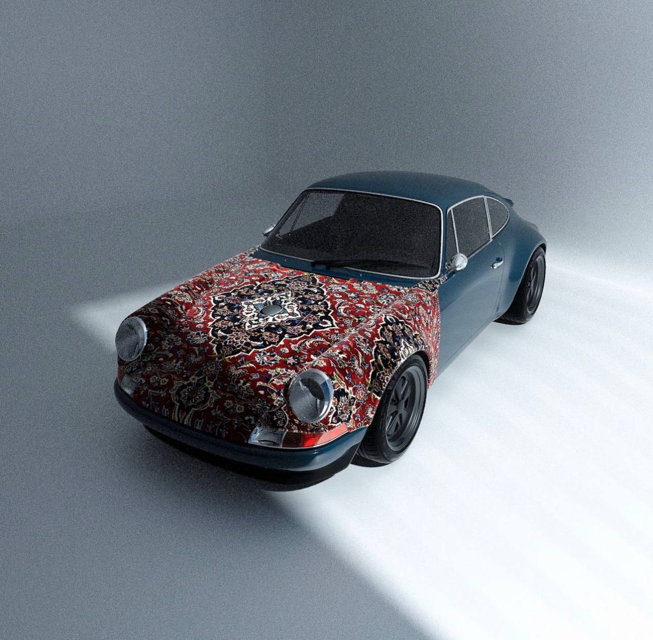 А если серьезно, это работа Иранского художника Али Хосейни. Более года назад Али разместил у себя на странице 3D работу с традиционным Иранским ковром на капоте автомобиля. Картинки завирусились сначала в Иране, а потом разлетелись по всему свету. И вот недавно компания Porsche, получив разрешение от автора, разместила его работу у себя на страницах в соцсетях.