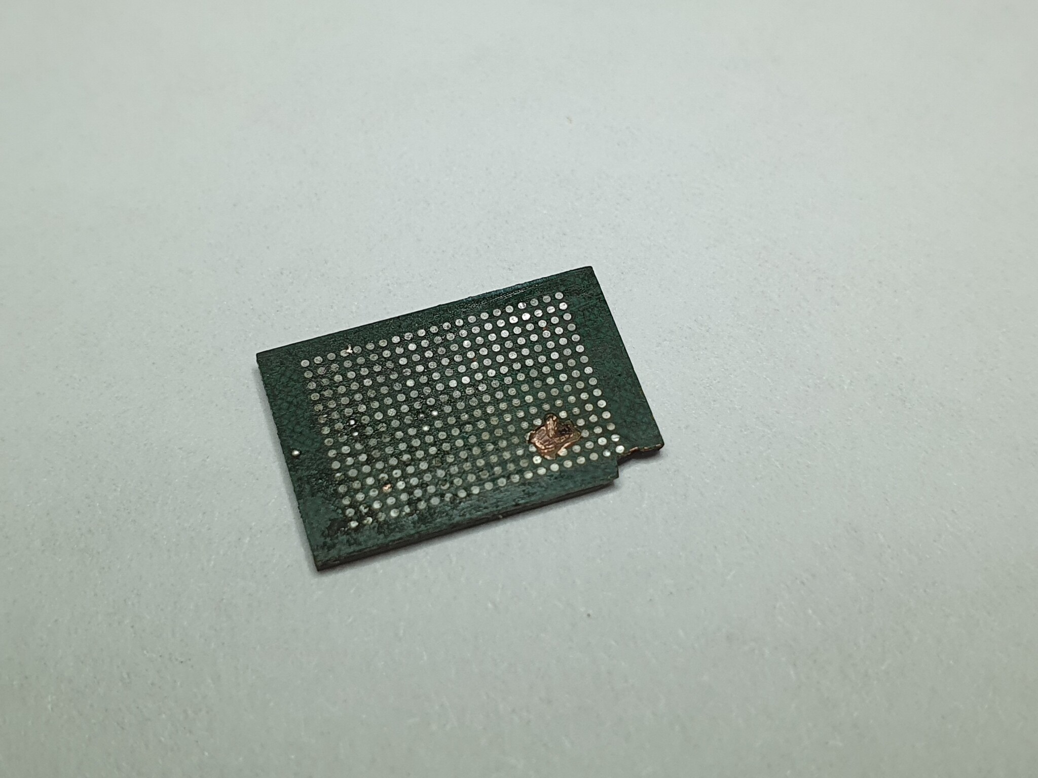 На фотокарточке выше видна линия разлома. Она чотко проходит по интерфейсному контроллеру питания и вот прям в миллиметрах от чипа памяти. Процессорная зона вообще не задета.