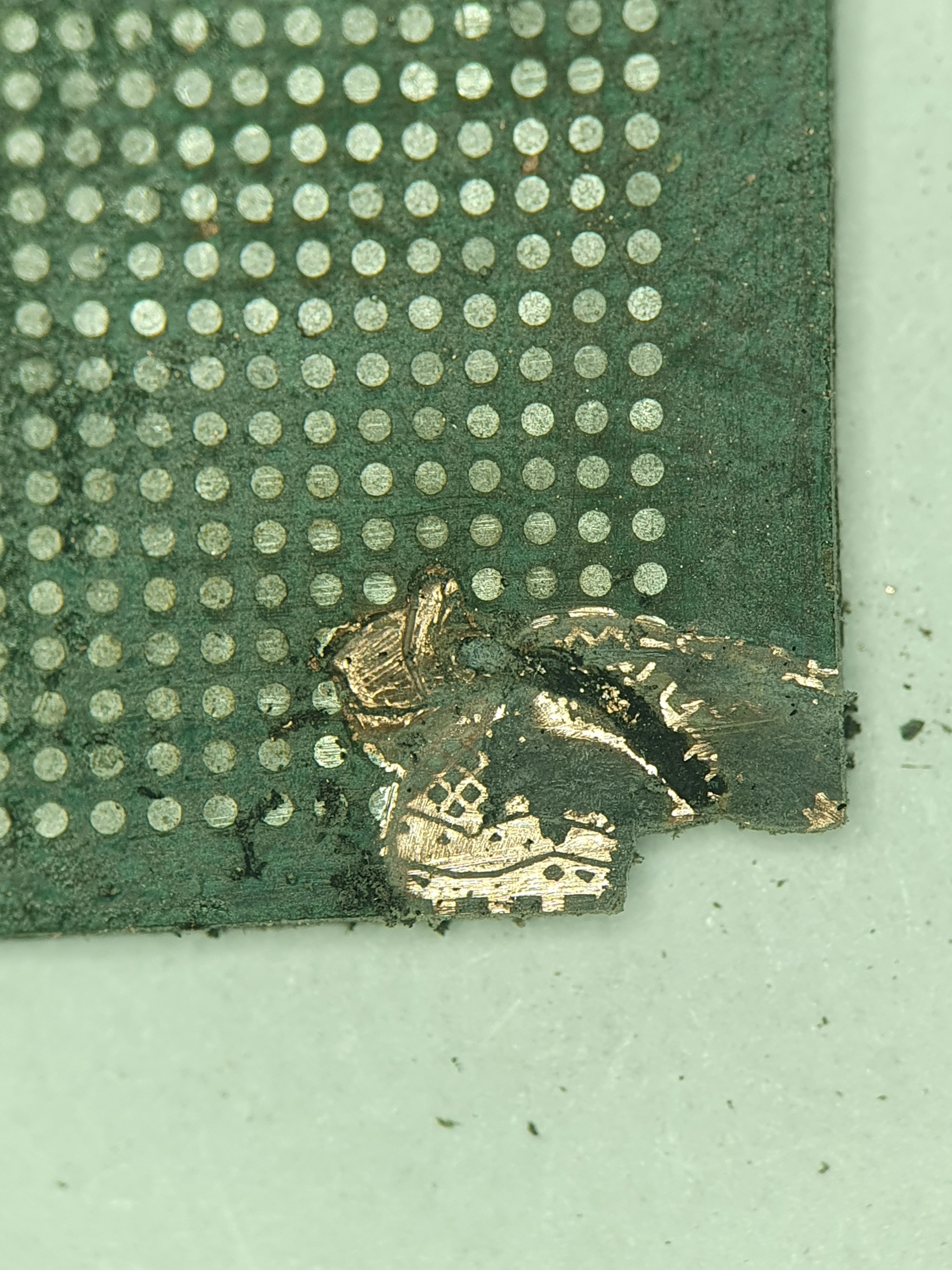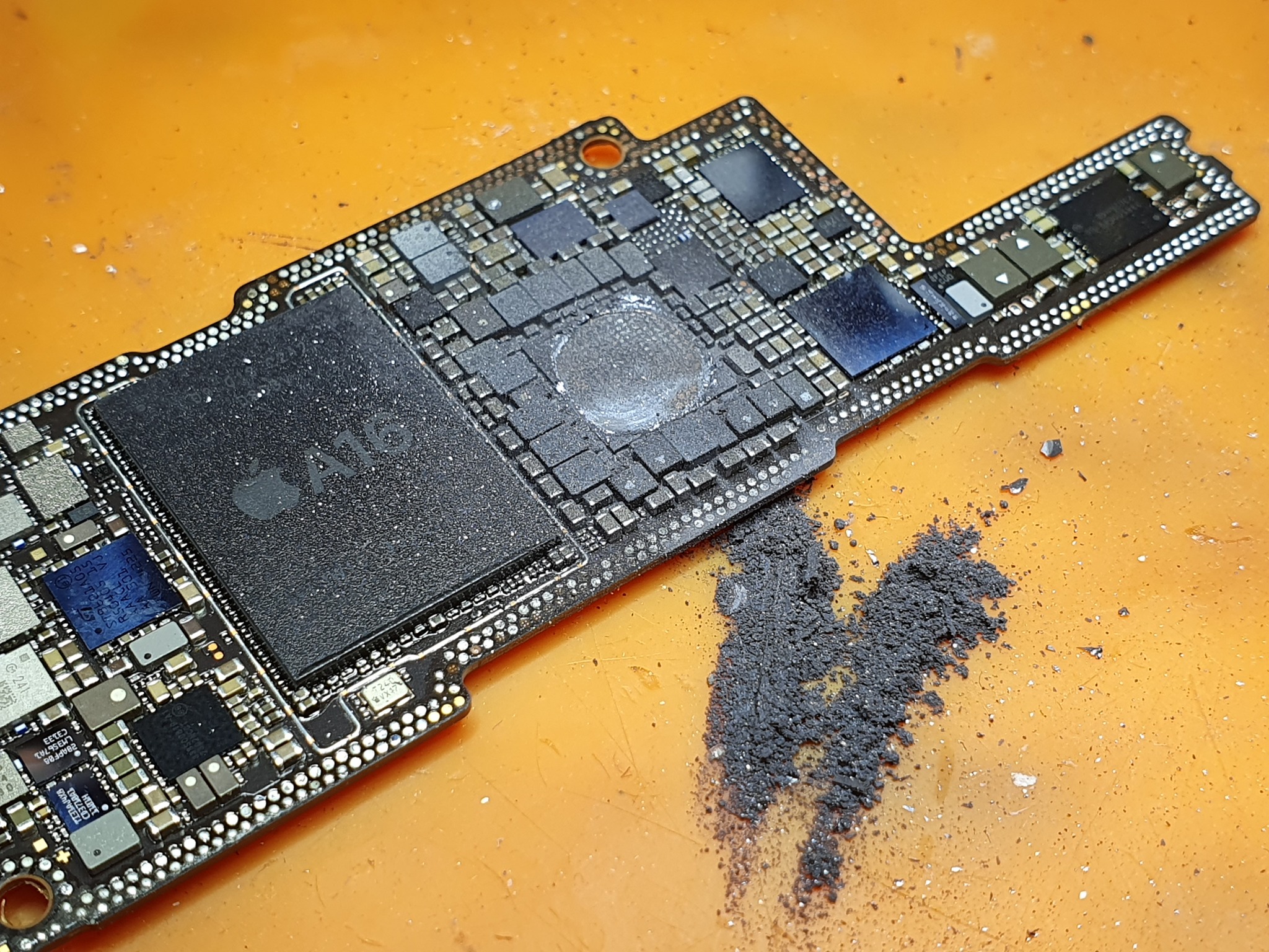 Теперь нужно более тщательно исследовать плату, убрать повреждённое и заменить с донора.