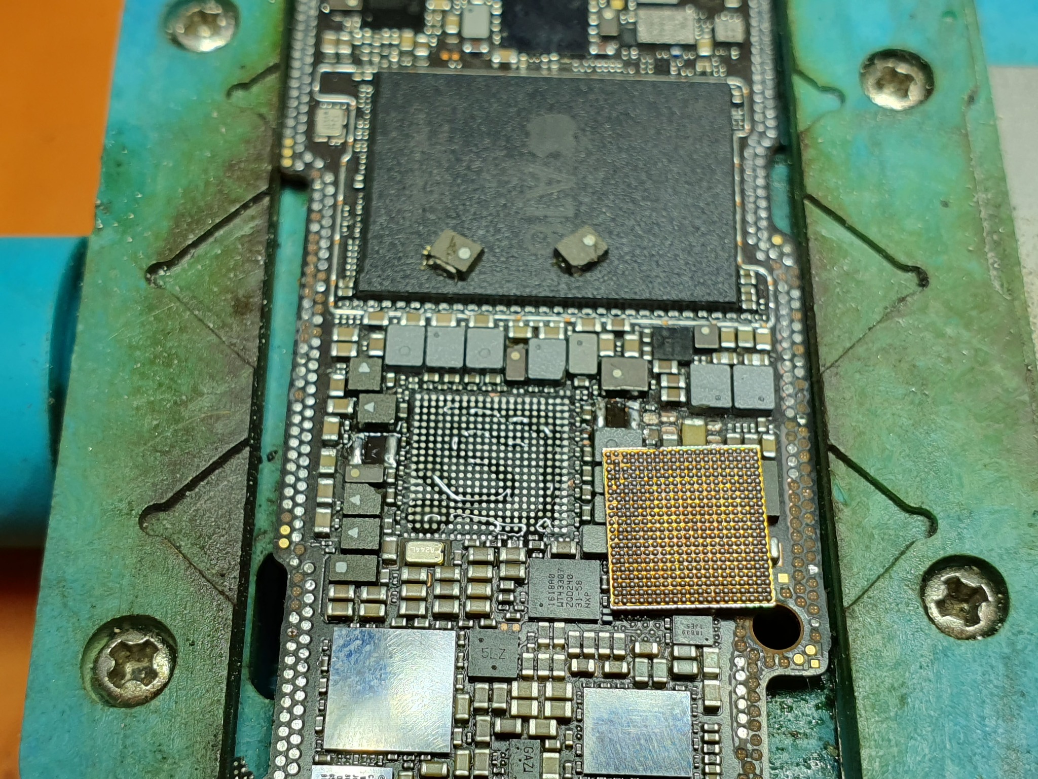 Далее нужно навесить на плату, за место повреждённых элементов, самое основное для запуска и тут на помощь приходят давно кончившиеся труппы