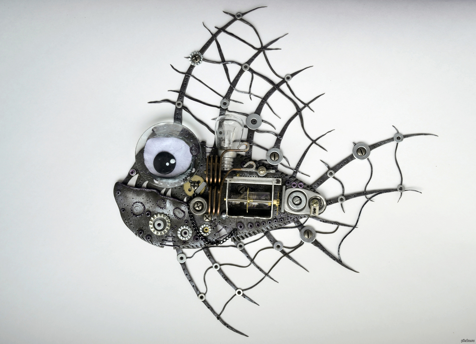 40 Agamalis Товарищ Рыбиус:-) 11 лет назад Моя рыба из полимерной глины. P.s.Если у кого-то есть старые и абсолютно ненужные механизмы,шестерёнки и прочее ,куплю за символическую плату для своих поделок [моё] Ручная работа Полимерная глина Рыба Творчество