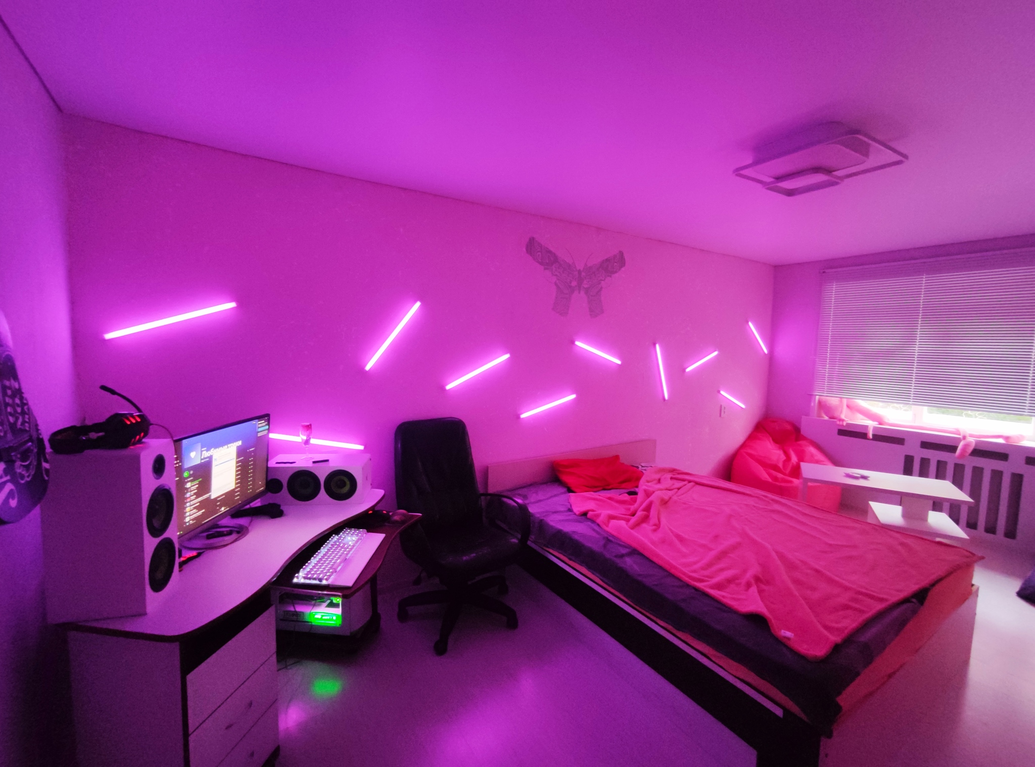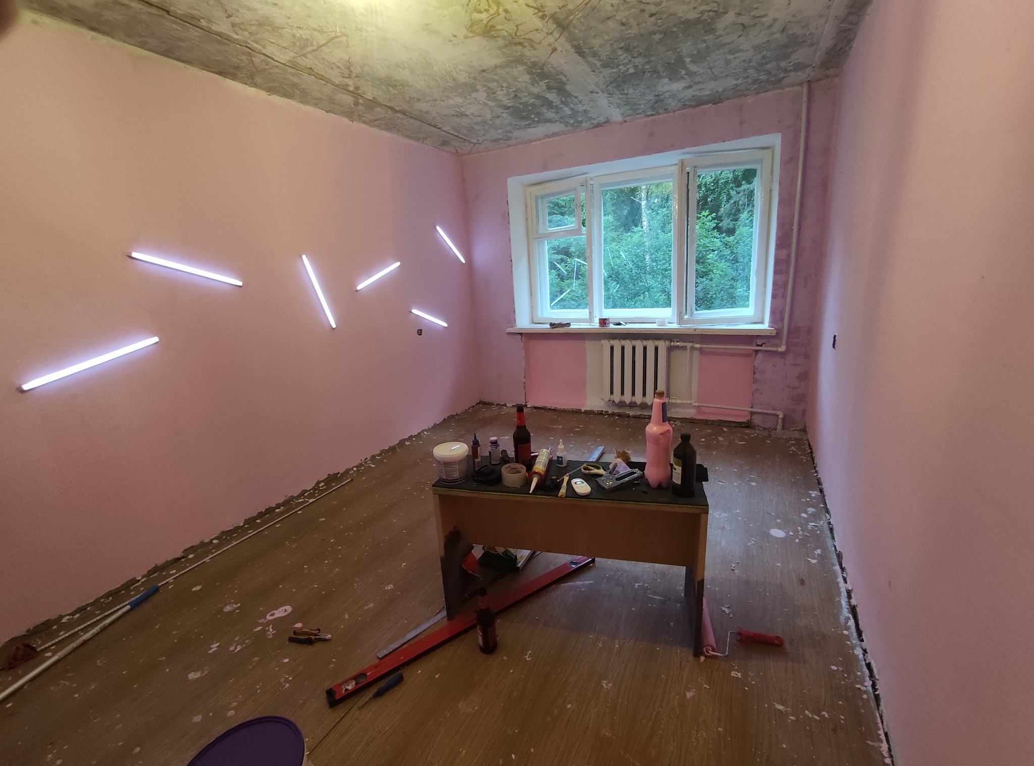 Палочки:,D. Прямоугольные светодиодные светильники 20/500мм на стену. Сделал из акрила, ПВХ,светорассеивающей пленки и rgb диодной ленты. Закупился дешевыми жидкими обоями с маркетплейса(живу я небогато), акриловой интерьерной краской, колерами, остатками ламината с огромной скидкой в местном строймагазине(ровно на мою квадратуру), грунтовкой,плинтусами и прочей мелочью по минимальному ценнику. И давай творить долгими летними вечерами после работы: