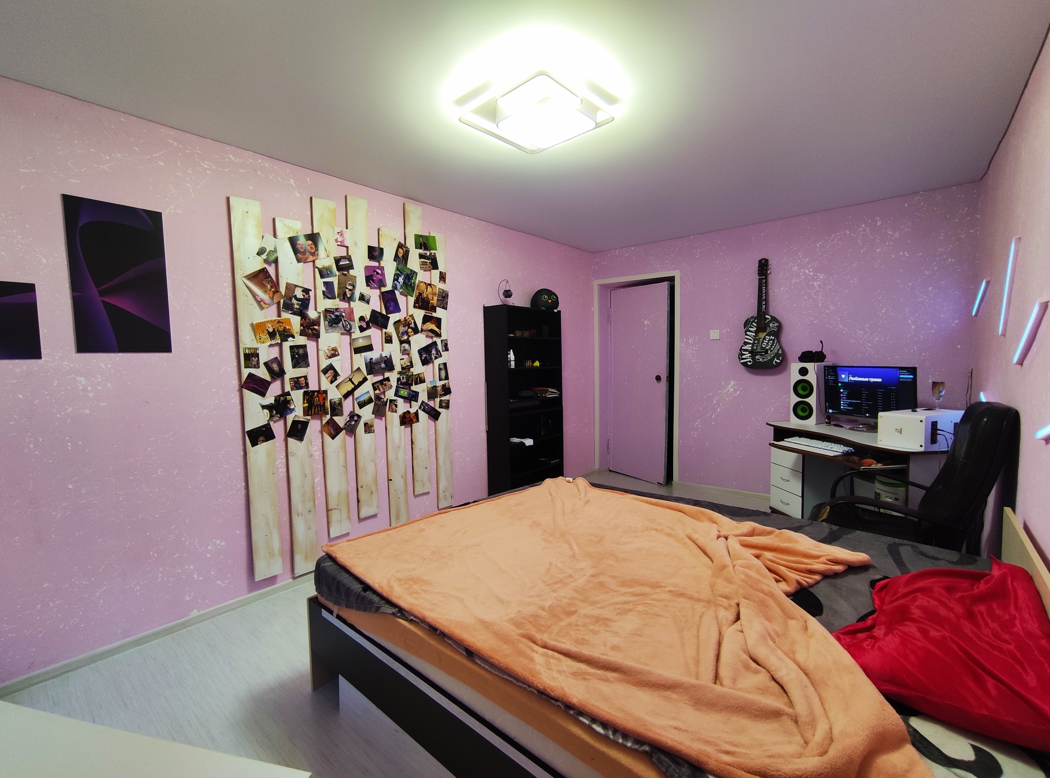 Остатками белой краски обрызгал стены крупной кистью. Доски, бережно хранимые в гараже непойми зачем-легка отшлифовать покрасить, и зае...установить напротив кровати на стену. Навесить на них фоток с хорошими моментами из жизни и просыпаться будет не так уныло. Рядом модульная картинка, делается за 15минут на работе из печати на пленке и пвх5мм. Наклейку на окно, наклейку над кроватью(привет любителям фаркрай).