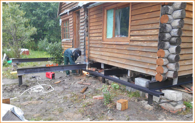 Временно подняли на балках и домкратах