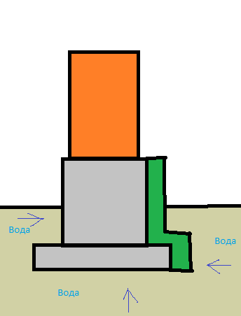 слева идёт подвальное помещение, а снизу идёт гидроизолированный бетон- там вся каша из-за того, что бетон заканчивается ниже уровня грунта, и силикат начинается в грунте.