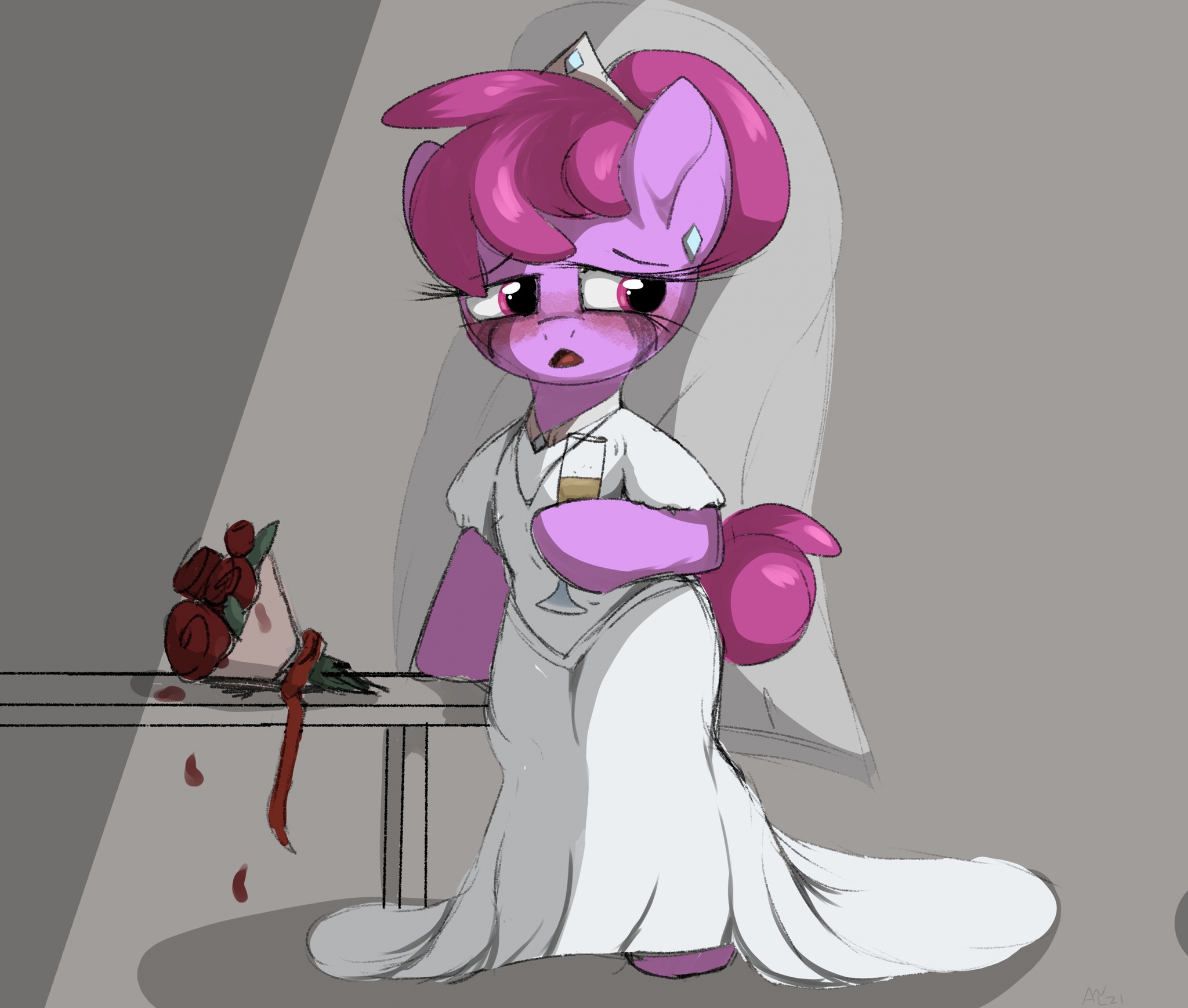 Мы слишком многого не знаем о её судьбе. Гораздо проще сказать, что мы знаем: слишком много пьющая молодая кобылка, с розовой шерсткой и фиолетовой гривой и кьютимаркой в виде виноградной грозди, живёт со своей дочерью Пина Коладой в Понивилле и дружит с Менуэтт Таймс. Всё.
