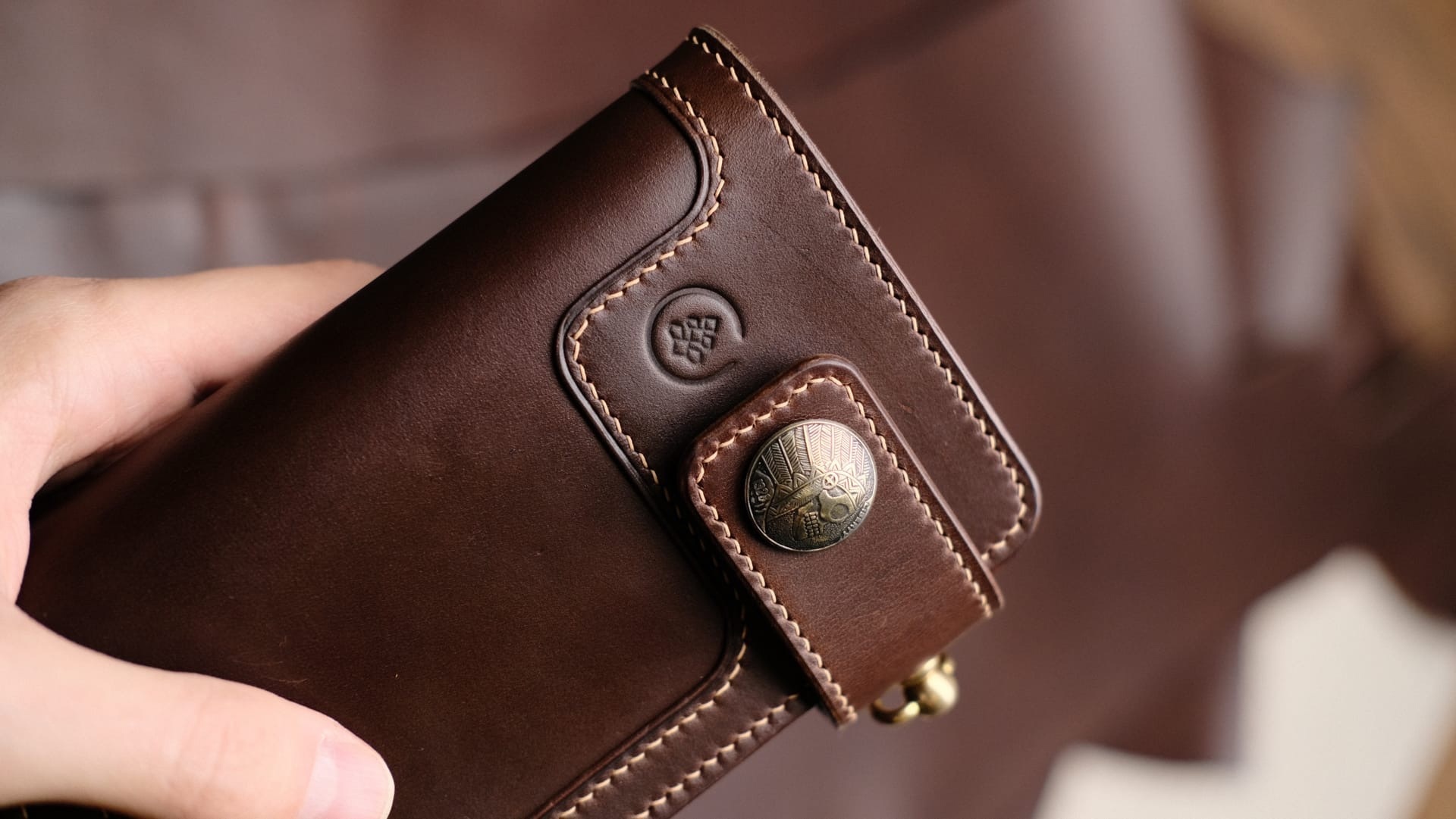 Выбор пал на байкерские кошельки. Тянут они к себе своей брутальностью, функциональностью и достаточным простором для творчества. За основу взята более-менее классическая модель, но было решено отрисовать всё с нуля. И раз тема байкерская, то и кожа должна быть соответствующей. Лошадиная кожа Horween производится в США на одноименном заводе более 100 лет. Кнопка-кончо с уже ставшим классическим для Дикого Запада изображения индейца, но в своеобразной интерпретации автора. Латунь, ровный контрастный шов с мелким шагом и другие детали, думаю, придали свой неповторимый, оригинальный вид.