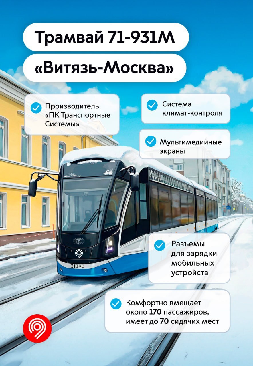 🔹 Более вместительные трамваи «Витязь-Москва» выйдут на Московские трамвайные диаметры — Т1 и Т2.