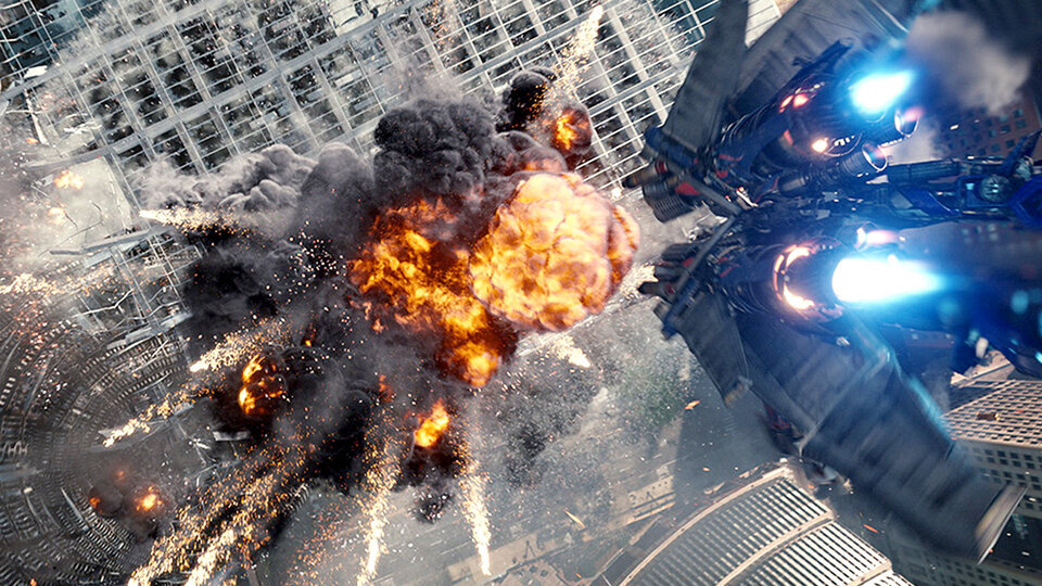 Но в 2011-м, когда вышел триквел «Темная сторона Луны», Бэй устроил то еще вагнерианское безумие. Чикаго здесь оккупируют орды десептиконов, вбивающие клинья в землю, честно планирующие превратить людей в рабов и устраивающие блокаду города. Башня Трампа складывается в гармошку, пока герои катятся по ее стенам. Десептиконы, как валькирии, рассекают над городом и поливают его огнем. На фоне этого действительно страшного эпизода пиксельное крошилово предыдущих и последующих фильмов производит куда меньшее впечатление.