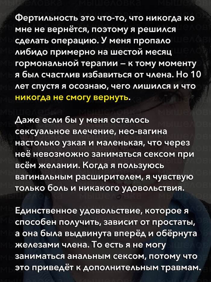 6641 Небезопасный контент (18+) Авторизуйтесь или зарегистрируйтесь для просмотра DELETED Трансгендер о проблемах после смены пола 3 года назад Ошибка Смена пола Длиннопост Скриншот Негатив Транссексуалы 273 126 49 27 25 Ещё 0