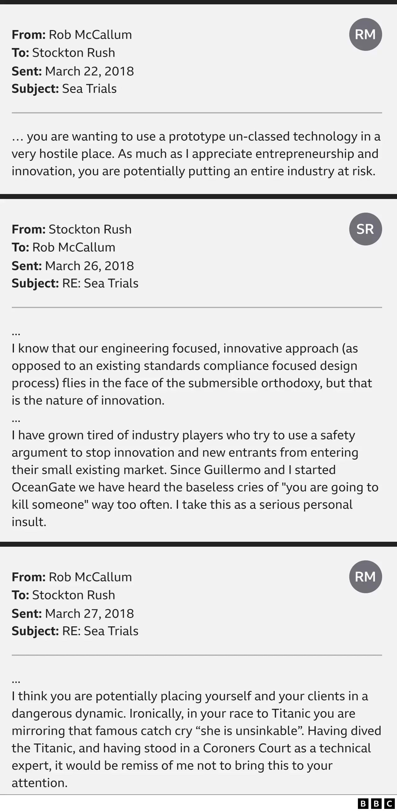По моему мнению, вы потенциально ставите себя и своих клиентов в очень опасную ситуацию. Что иронично, в гонке к Титанику, вы повторяете известную мантру “она непотопляема” (в англ. языке гражданские корабли женского рода, имеется в виду известное высказывание владельца Титаника о своем корабле, прим переводчика). С моим опытом погружения к Титанику и выступлений в суде в роли тех эксперта, это было бы халатностью не оповестить вас об этом.
