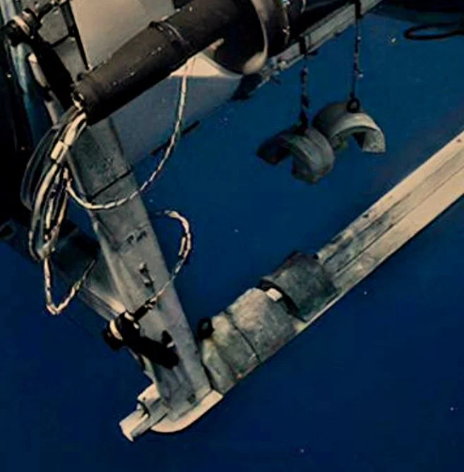 Что интересно, на всех фото-видео поднятых обломков, мы не видим ни одного куска углепластикового корпуса. Носовой люк (из титана) крепился к титановому фланцу, который был приклеен к карбоновой трубе. Фланец подняли совершенно чистым, ни одного кусочка углепластика на нем не осталось…