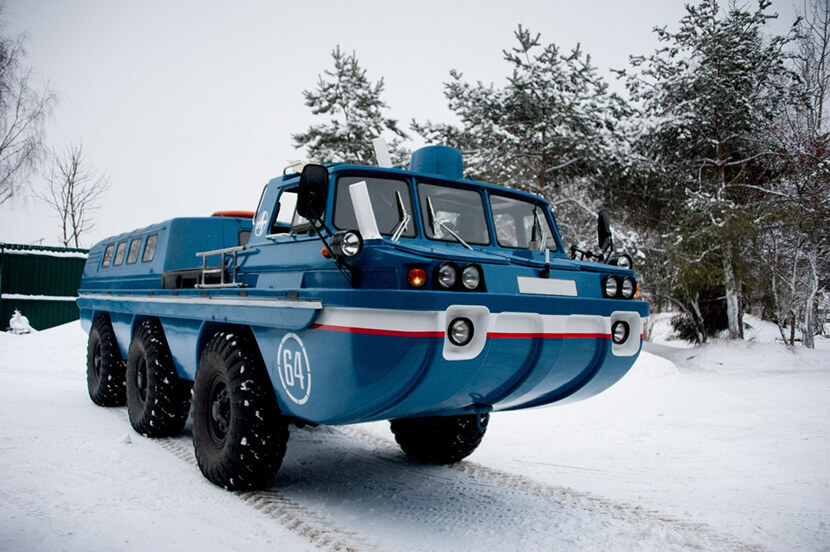 Чтобы техника могла проехать по глубокому снегу, густому лесу, болоту, целине и покорить водное пространство, нужно было соблюсти ряд ключевых особенностей: минимальную снаряженную массу, как можно больший дорожный просвет, независимую подвеску, поворотные задние колеса, максимальную динамику и т.д. Предсерийный прототип такой машины был построен в 1972 году.
