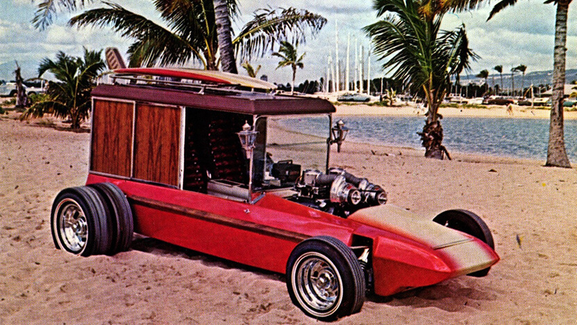 Для декора «пляжного» багги Баррис применил старинные «тюдоровские» фонари. Проект, названный Surf Woody, являлся заправским автомобилем марки Barris Kustom Industries. Увы, история о пляжном «мобиле» не заинтересовала инвесторов. Но она оказалась интересна для частных спортсменов…