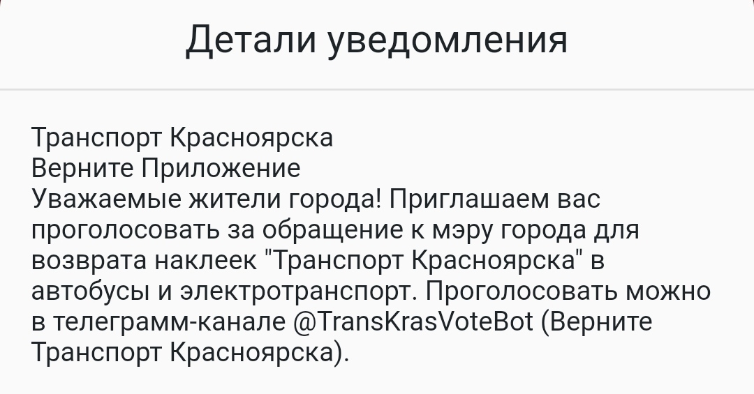 Вечером в приложении появилось следующее сообщение: