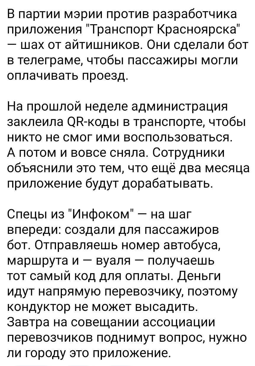 Интересная ситуация с оплатой проезда в общественном транспорте г. Красноярска.