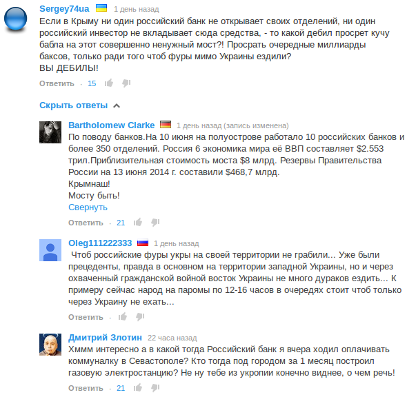 Также не забывай, что от моста еще нужно соответствующую дорогу тянуть на Севастополь и Симферополь. А то если этого не делать, получится, что после шикарной скоростной 4-полосной дороги ты будешь съезжать на узенькие крымские дороги, которые Украина содержала в состоянии "на отъе*ись". И вроде данный вариант моста + дороги-развязки дешевле в сумме будет.