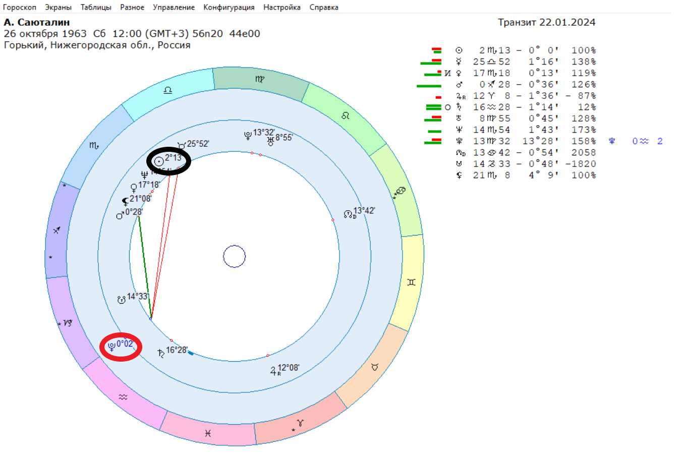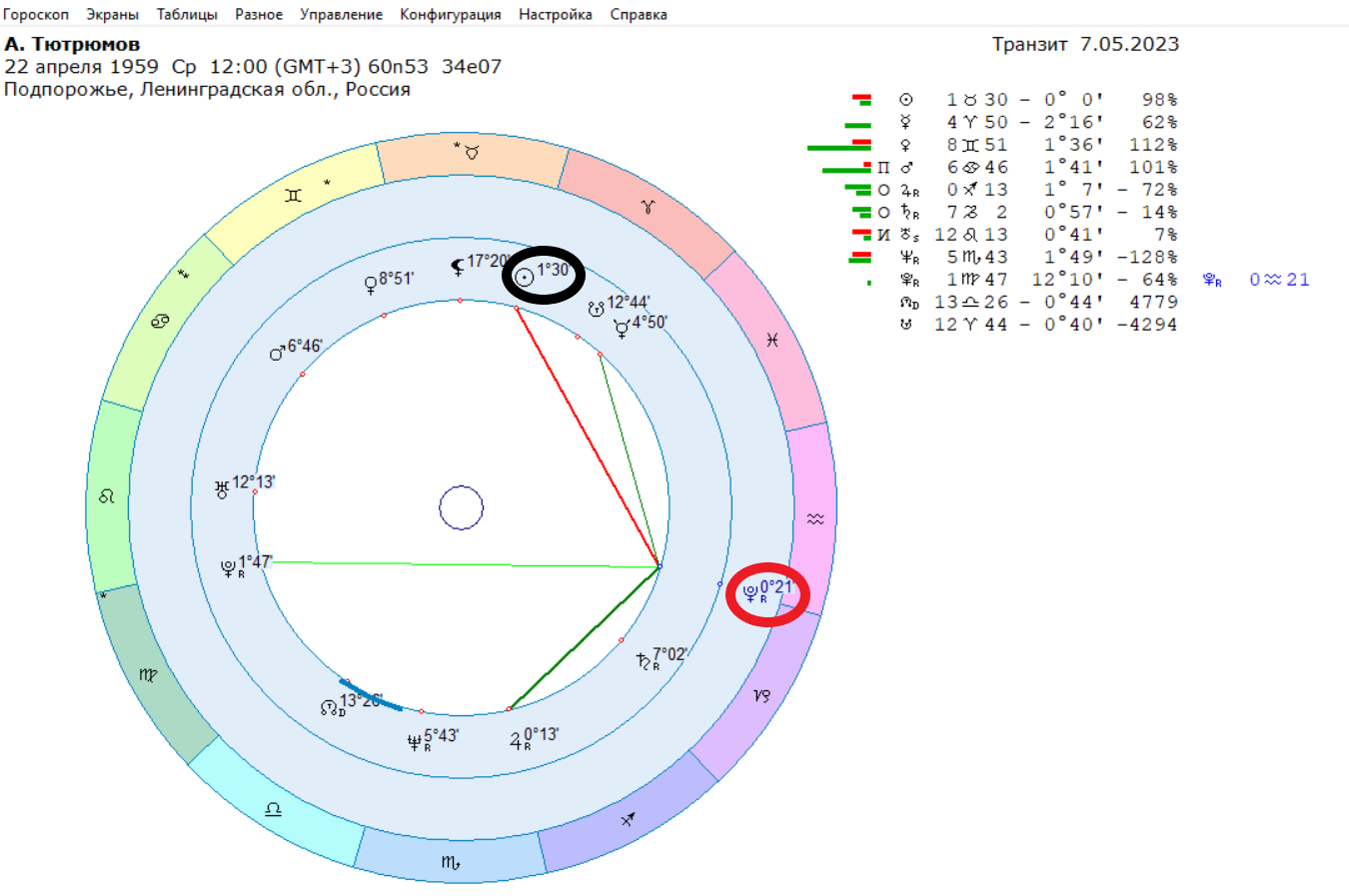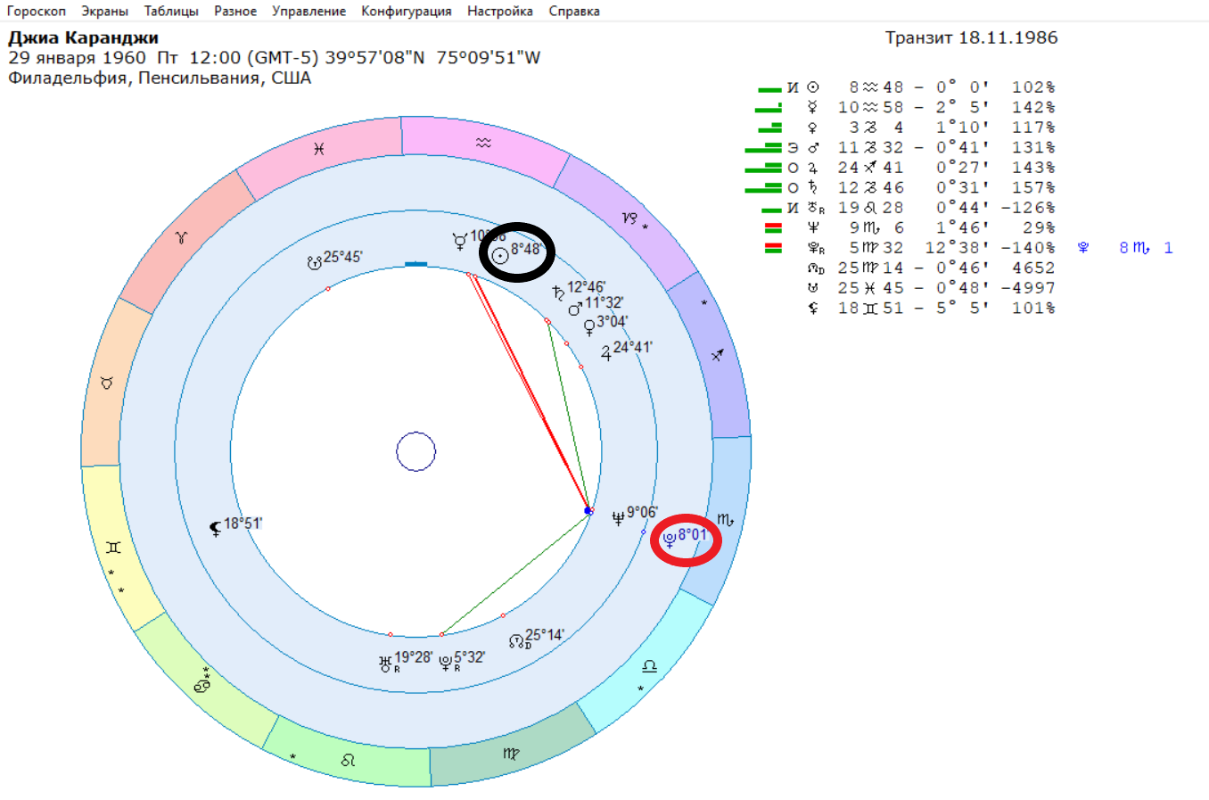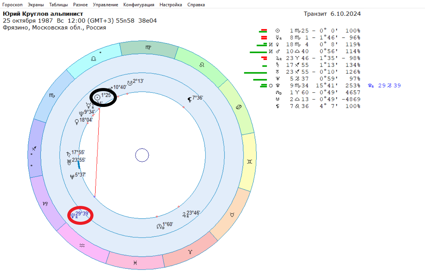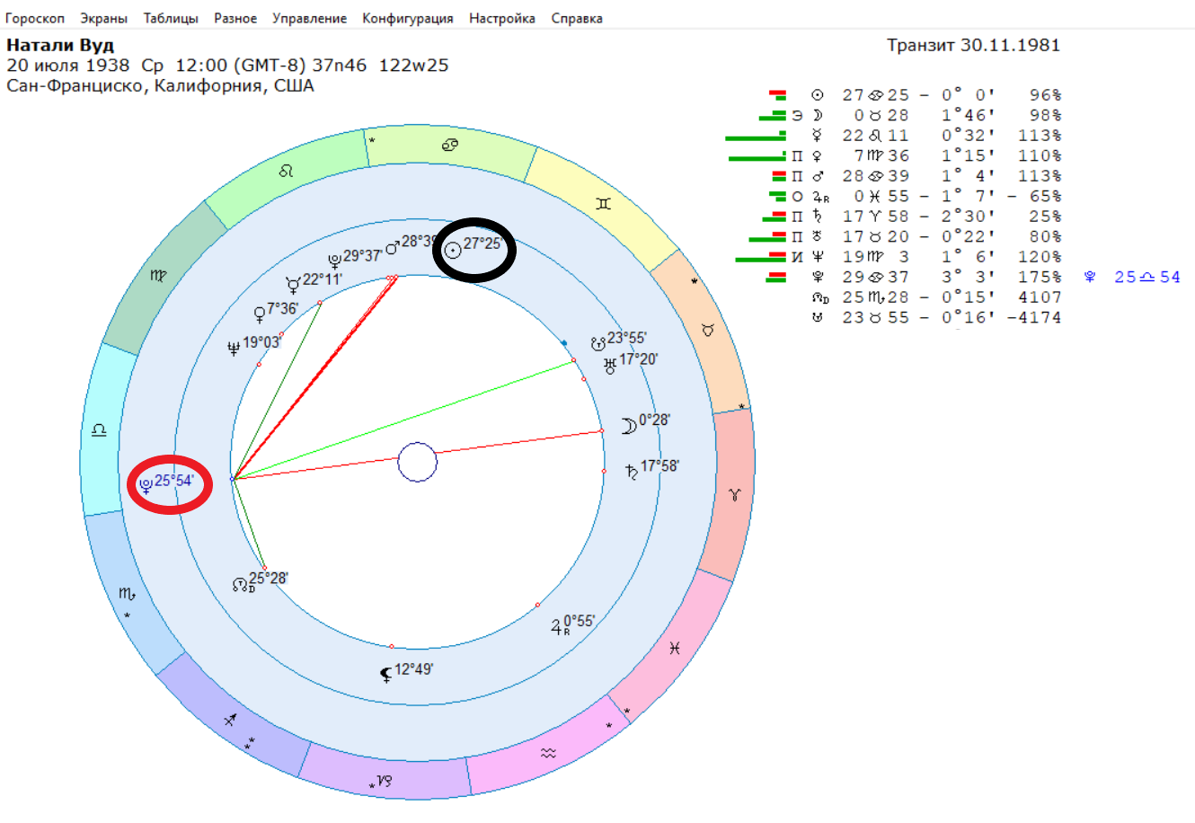 А теперь к картам. Сегодня у меня много картинок, приготовьтесь.😀 Натальное Солнце (Солнце в момент рождения человека) будет обведено в черный кружок, транзитный Плутон (положение планеты в день события) будет обведен в красный. Поехали!