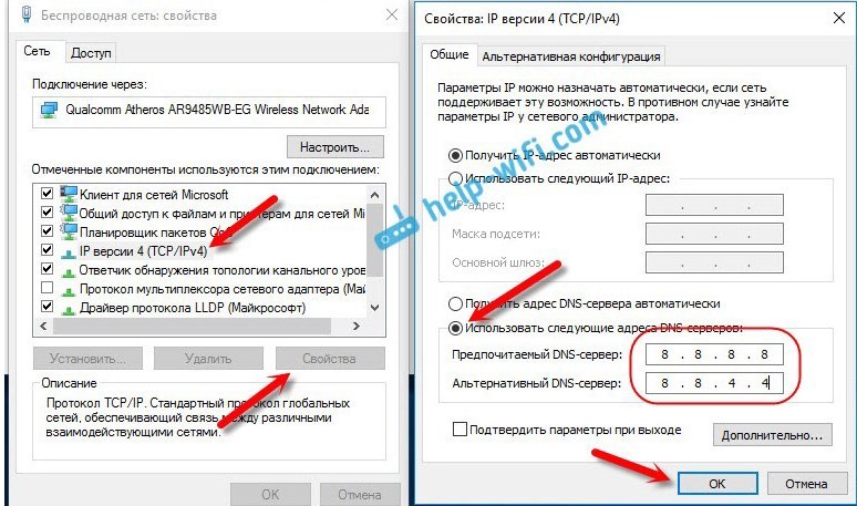 2. "Использовать следующие адреса DNS-адресов"