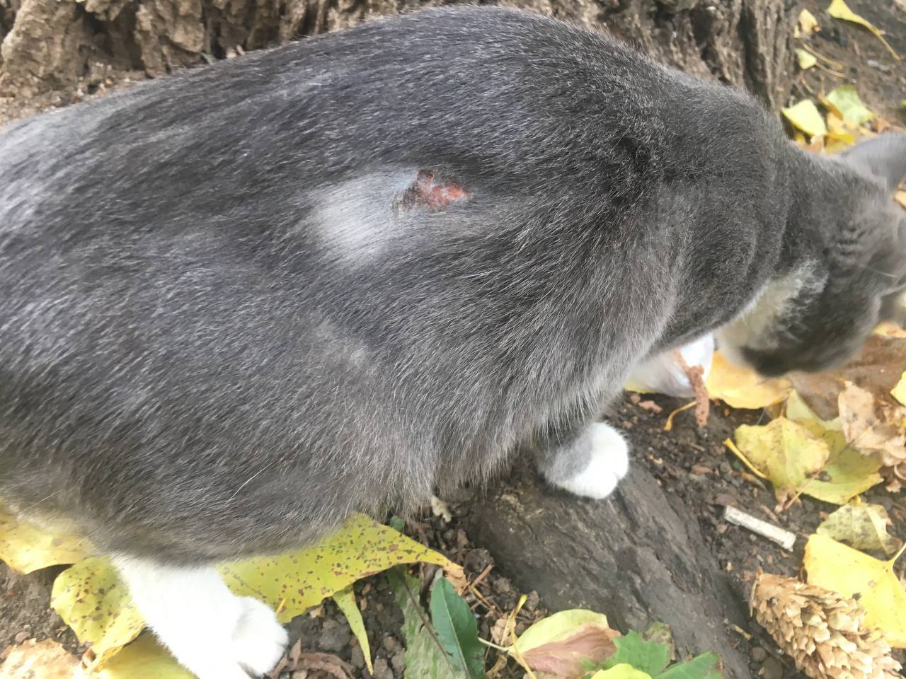 Выкинули видимо, даже не сделав прививки, из-за чего к сожалению, схватила либо дерматит,либо лишай.