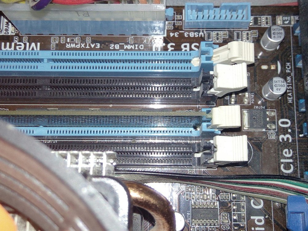 Здравствуйте все, кто это читает. У меня есть материнская плата Asus P8H77-V Le IH 77 DDR 3 ATX AC'97 8ch GbLAN SATA3 RAID VGA в которой две пары слотов для операционной памяти одного цвета и другого. Сейчас у меня стоит 1 пара оперативки DDR 3 4096Mb 1600VHz Kingston KVR16N11S8/4 в чёрном цвете и когда я сую оперативную память из чёрных слотов в синие, то она не до конца суётся, она не защёлкивается, если и можно защёлкнуть, то только одну сторону и тогда она будет стоять косо, другая половинка будет просто висеть в воздухе. На материнской плате написан интерфейс только DDR 3, планки с тем же интерфейсом. Просто недавно у меня недавно возникла необходимость увеличения оперативной памяти.