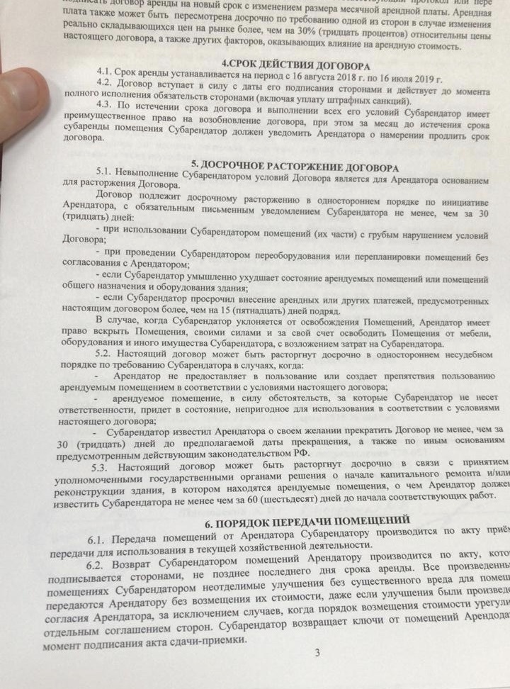 В договоре есть пункт, о том, что «договор может быть расторгнут досрочно, если будет принято решение о капремонте», а так же пункт, что «затраты по ремонту субарендатор (мы) берет на себя», однако, все уведомления со стороны арендодателя были исключительно устными, никаких документов о проведении капремонта в здании мы так же не видели.