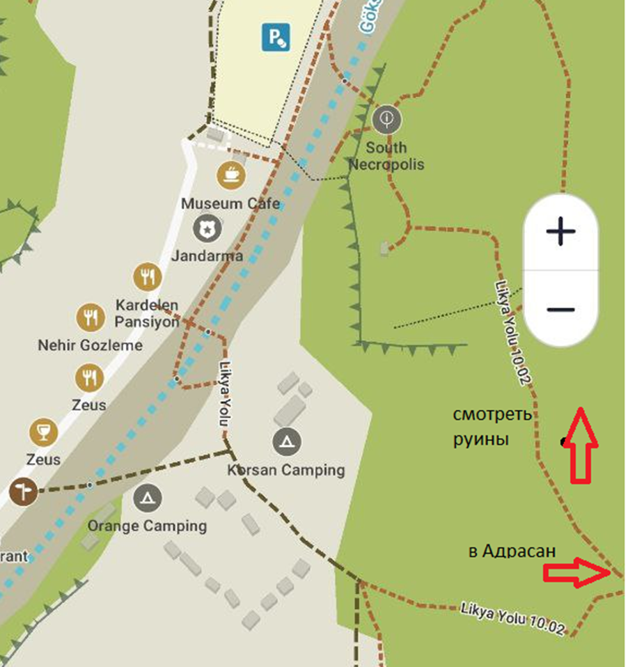 Для трекеров, идущих в город по Ликийский тропе, вход б/п... А вот если идти от пляжа обратно по левому берегу, придется заплатить за вход в город с этой стороны те же 10 евро.